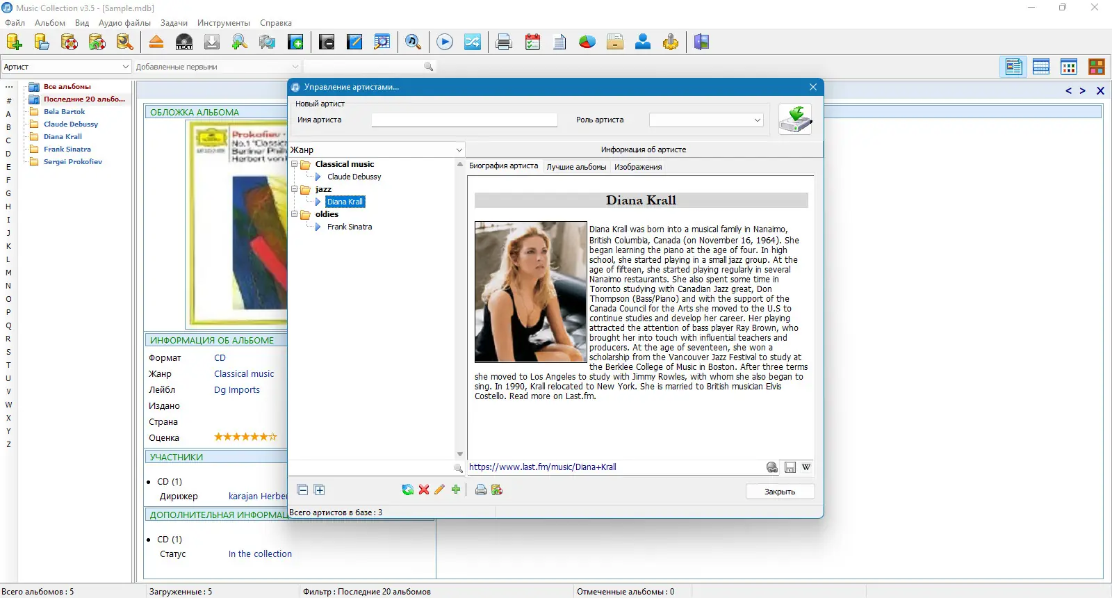 Music Collection — программа для систематизации музыкальной библиотеки, позволяющая создавать, редактировать и управлять коллекциями аудиозаписей с автоматическим получением данных из интернета и поддержкой множества форматов файлов.