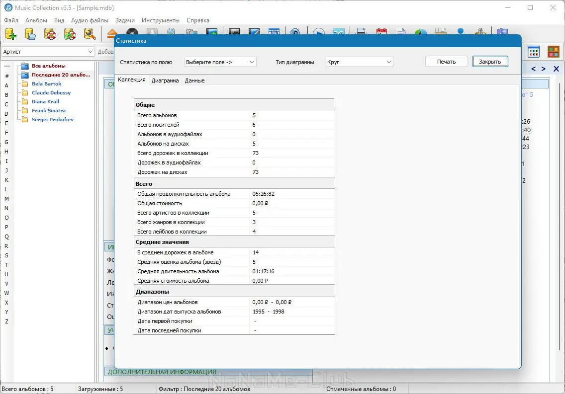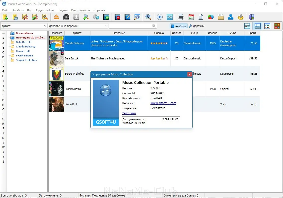- Возможность ведения нескольких независимых музыкальных коллекций одновременно.
