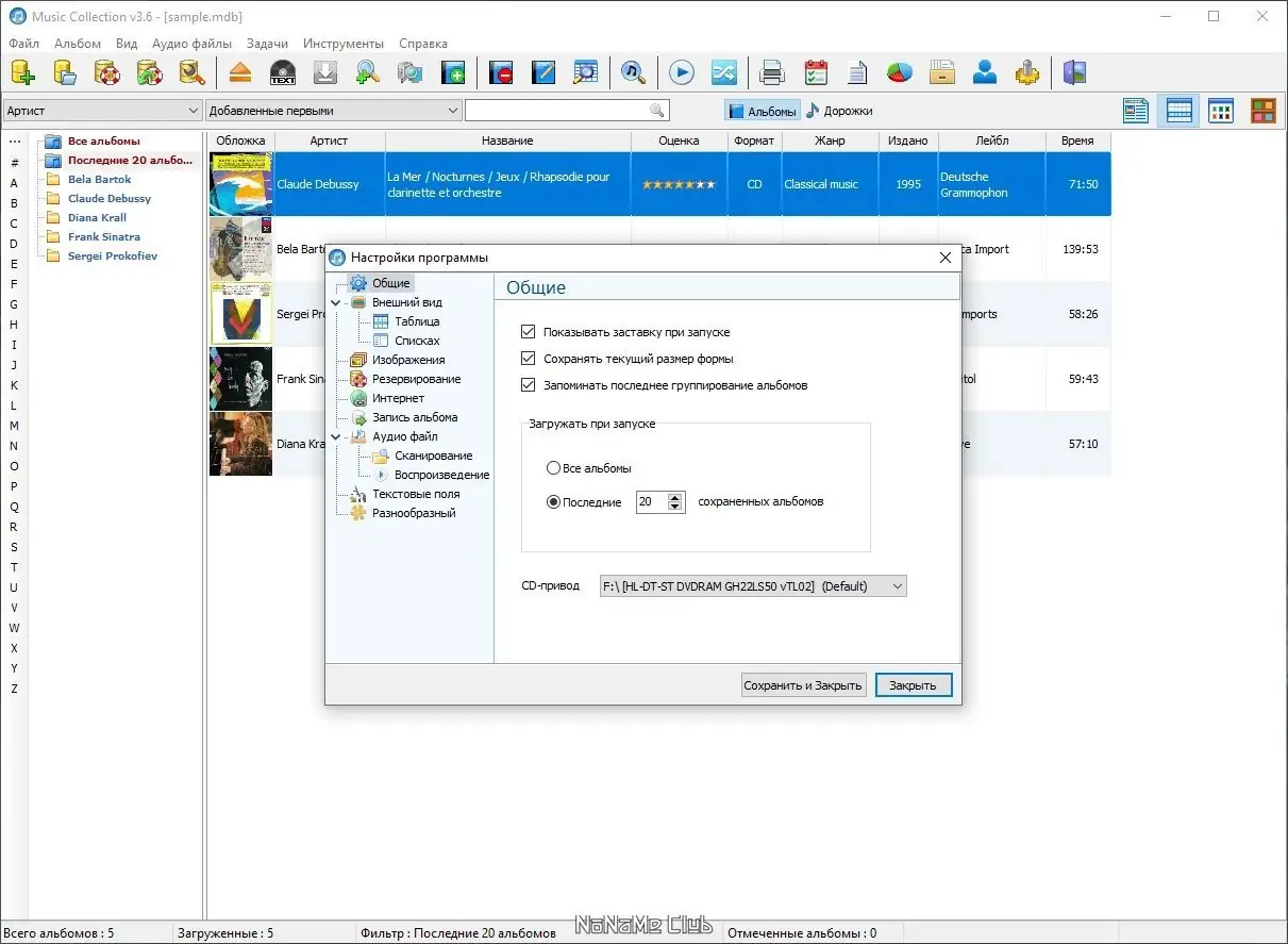 - Автоматическая загрузка информации с интернет-ресурсов, включая данные CD и обложки альбомов.