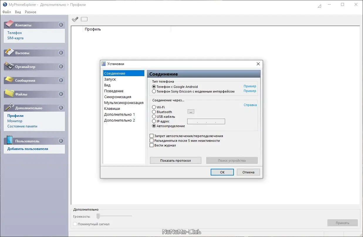 Работа с MyPhoneExplorer