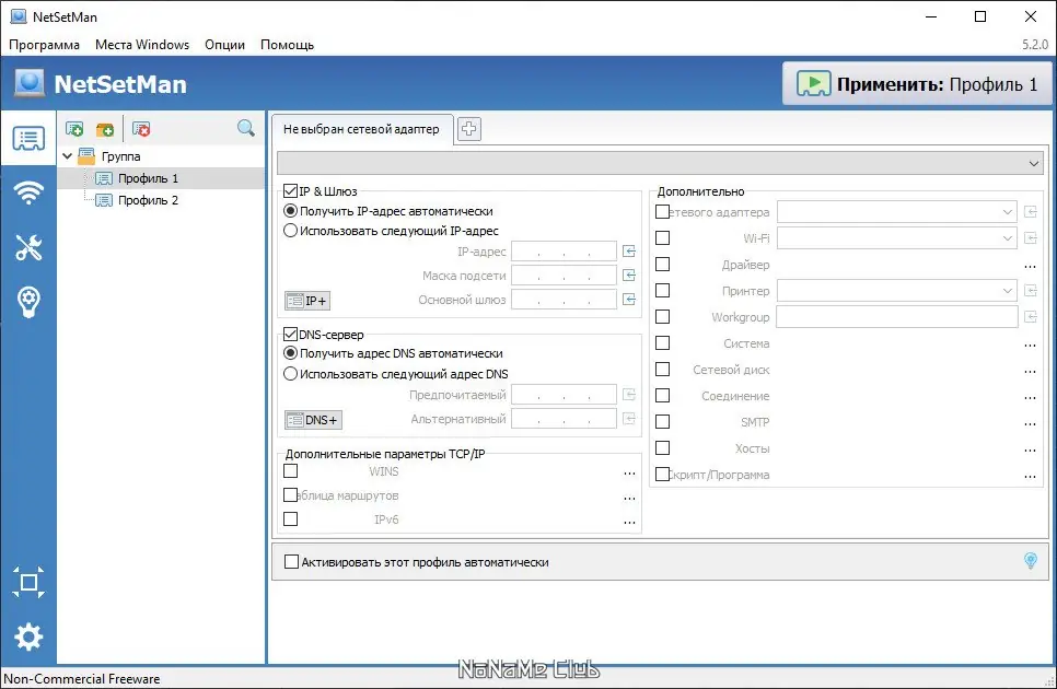 NetSetMan — это компактное приложение для быстрого переключения между сетевыми профилями, позволяющее автоматизировать настройку подключений в зависимости от места использования. Программа подойдёт тем, кто регулярно работает в разных сетях и не хочет каждый раз вручную изменять параметры IP, DNS, шлюзов и других компонентов. Она поддерживает создание до шести профилей, каждый из которых можно настроить под конкретную задачу или окружение.