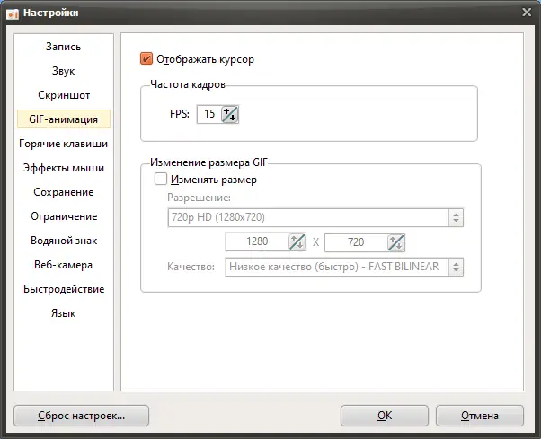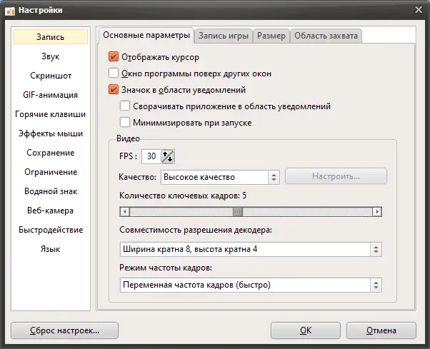 - Возможность использовать сторонние кодеки для оптимизации размера файла.
