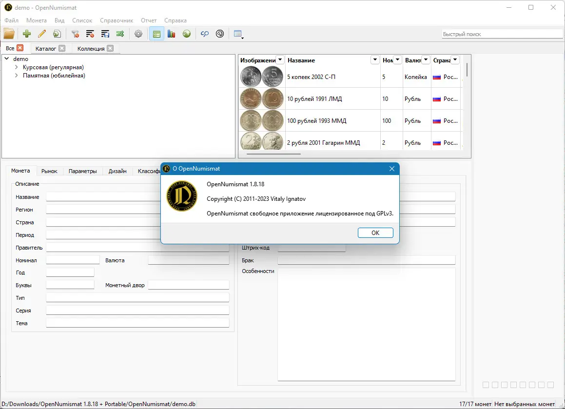 OpenNumismat позволяет эффективно управлять коллекцией без необходимости в сложных настройках или внешних базах данных.