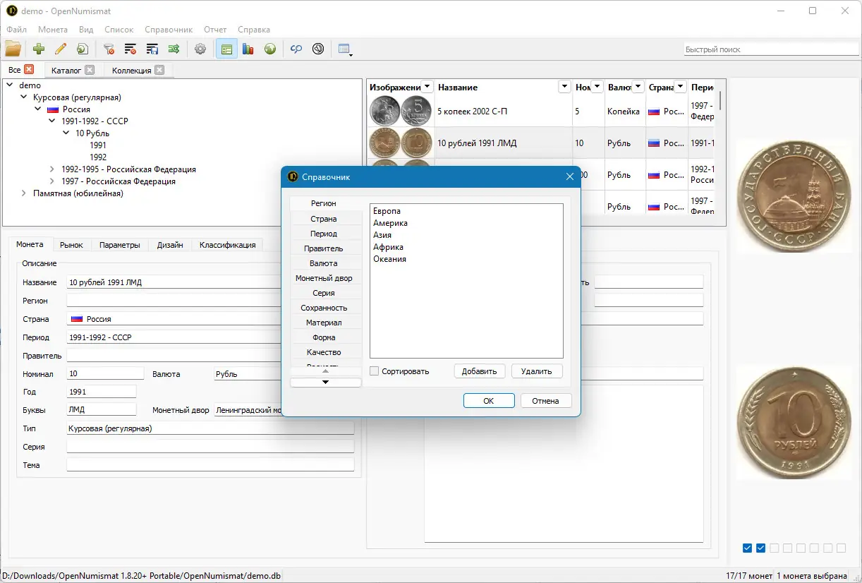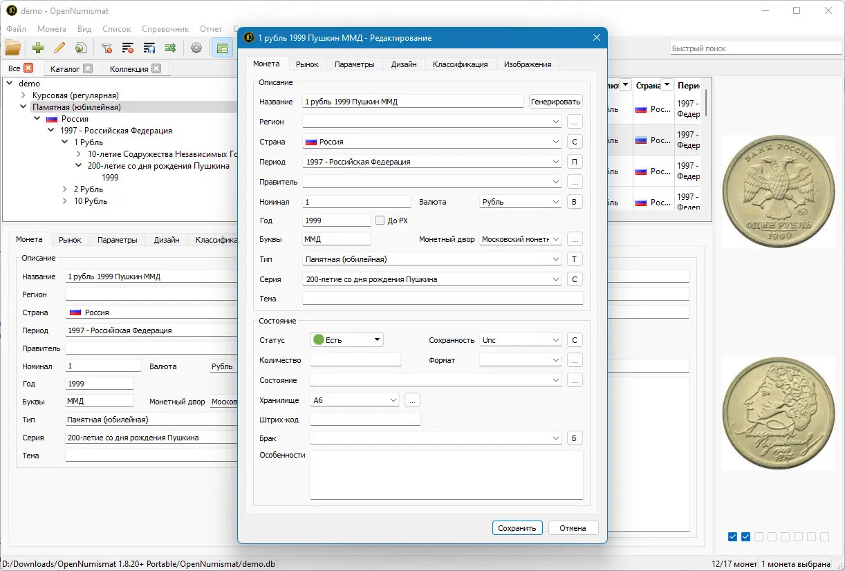 Работа с OpenNumismat