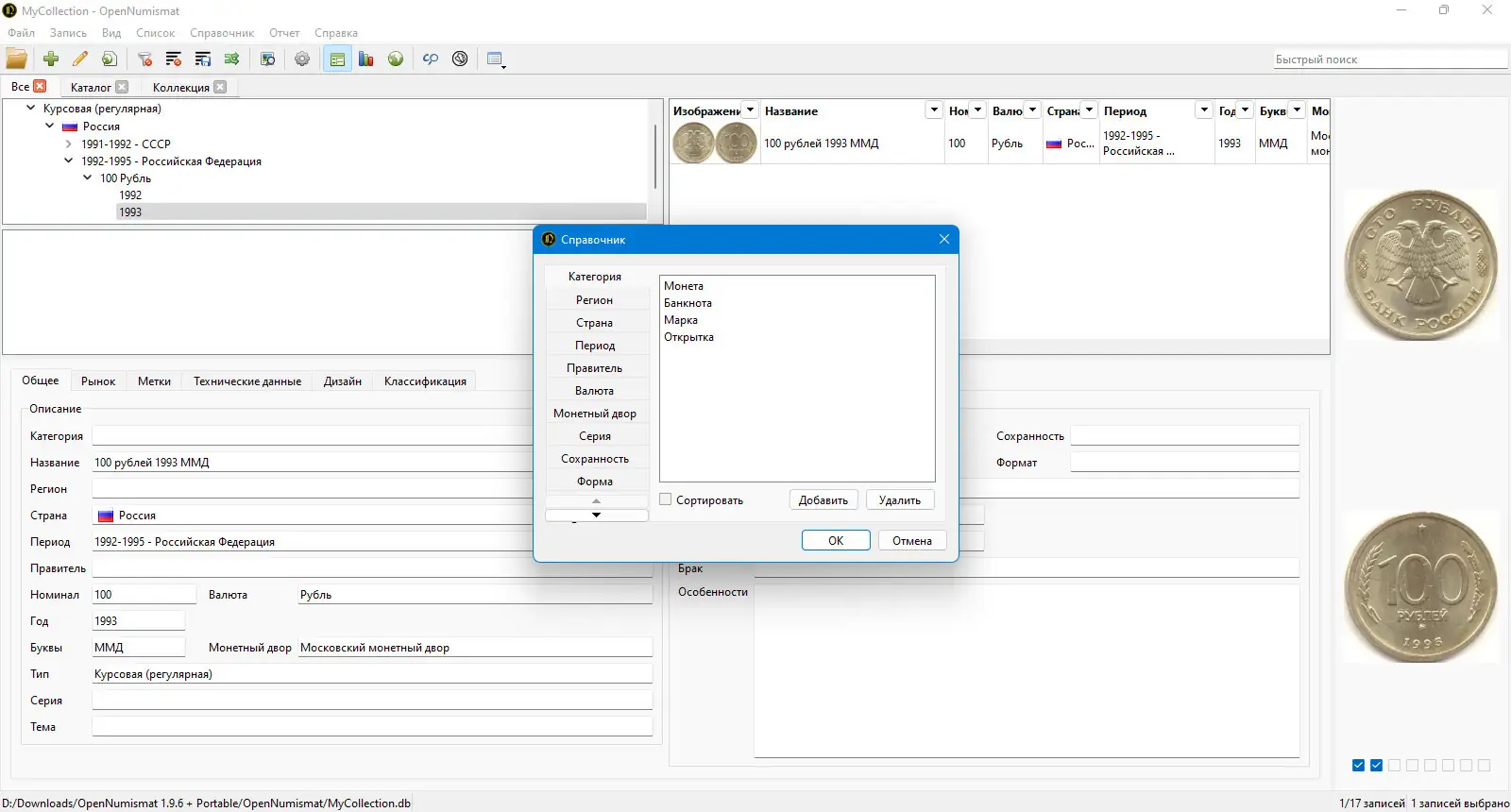 Работа с OpenNumismat