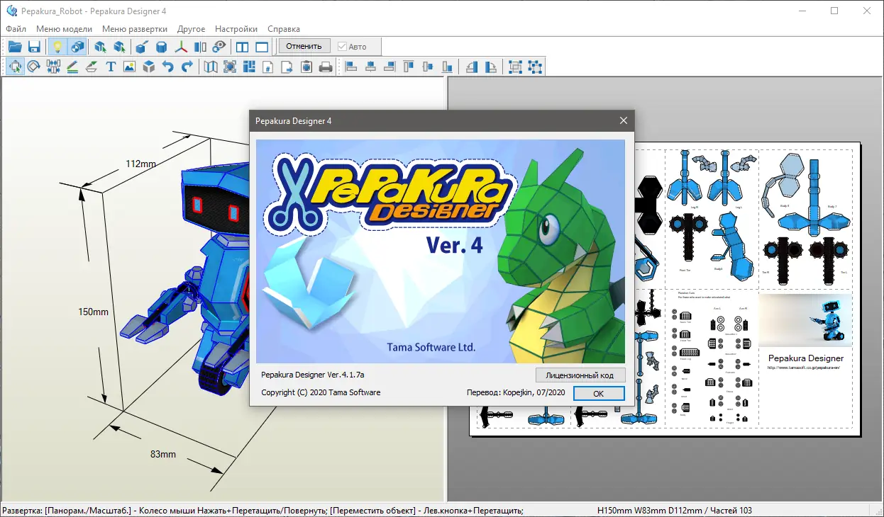 - Экспортирует результат в 2D-изображения и объединяет их с оригинальной моделью для просмотра в Pepakura Viewer.