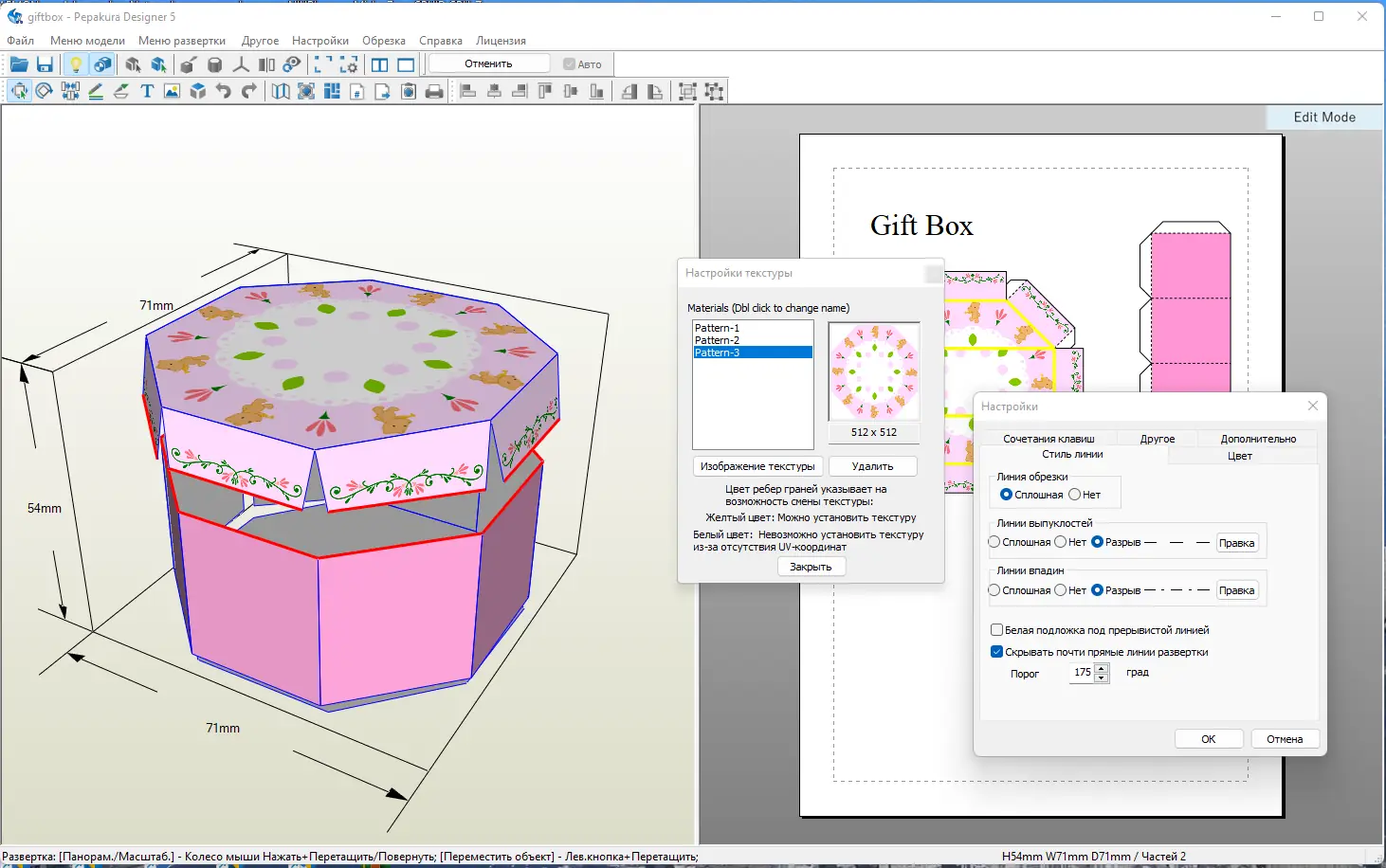 - Автоматическая генерация развертки с возможностью ручной корректировки.