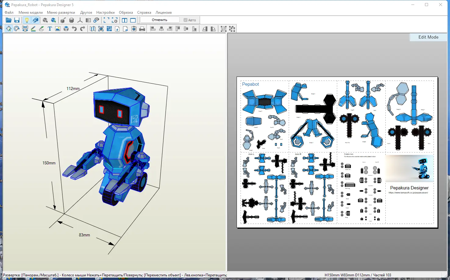 Программа Pepakura Designer предназначена для создания разверток бумажных моделей на основе трехмерных моделей. Она позволяет преобразовывать 3D-объекты в плоские выкройки, которые можно распечатать, вырезать и собрать вручную. Этот инструмент незаменим для любителей бумажного моделирования, которым необходимо точное и удобное программное обеспечение для работы с цифровыми прототипами. Поддержка множества форматов и гибкие настройки делают процесс моделирования максимально простым и точным.