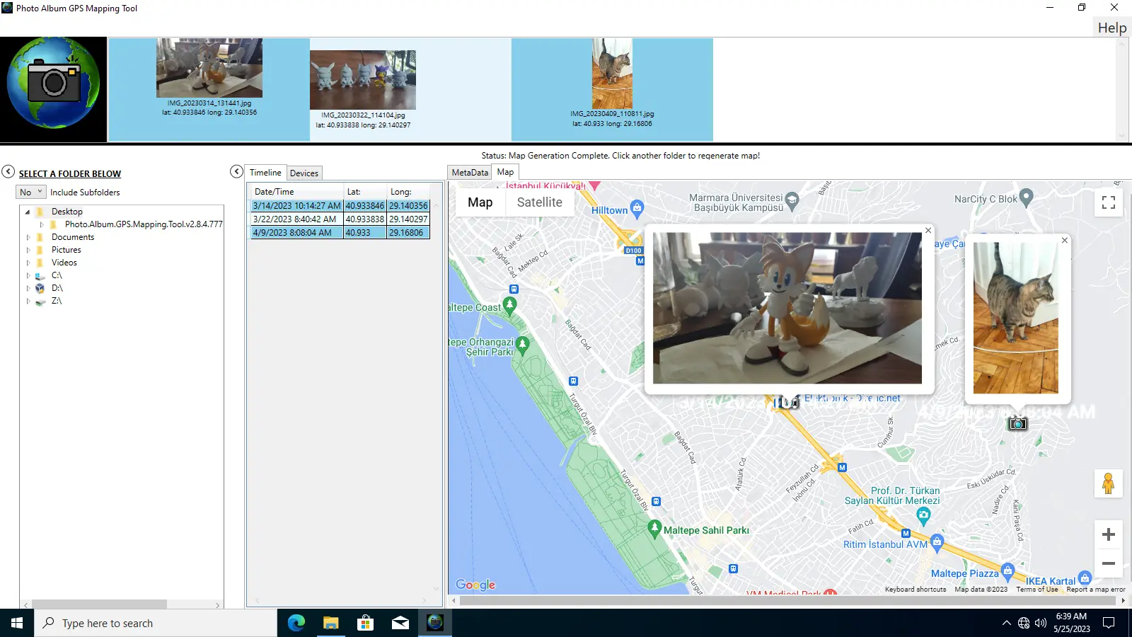 Photo Album GPS Mapping Tool — это удобное приложение для визуализации географических данных фотографий, позволяющее отображать снимки на интерактивной карте и управлять их геотегами. Программа автоматически извлекает GPS-координаты из метаданных изображений и отображает их в формате, напоминающем Google Earth, упрощая навигацию по местам съемки.