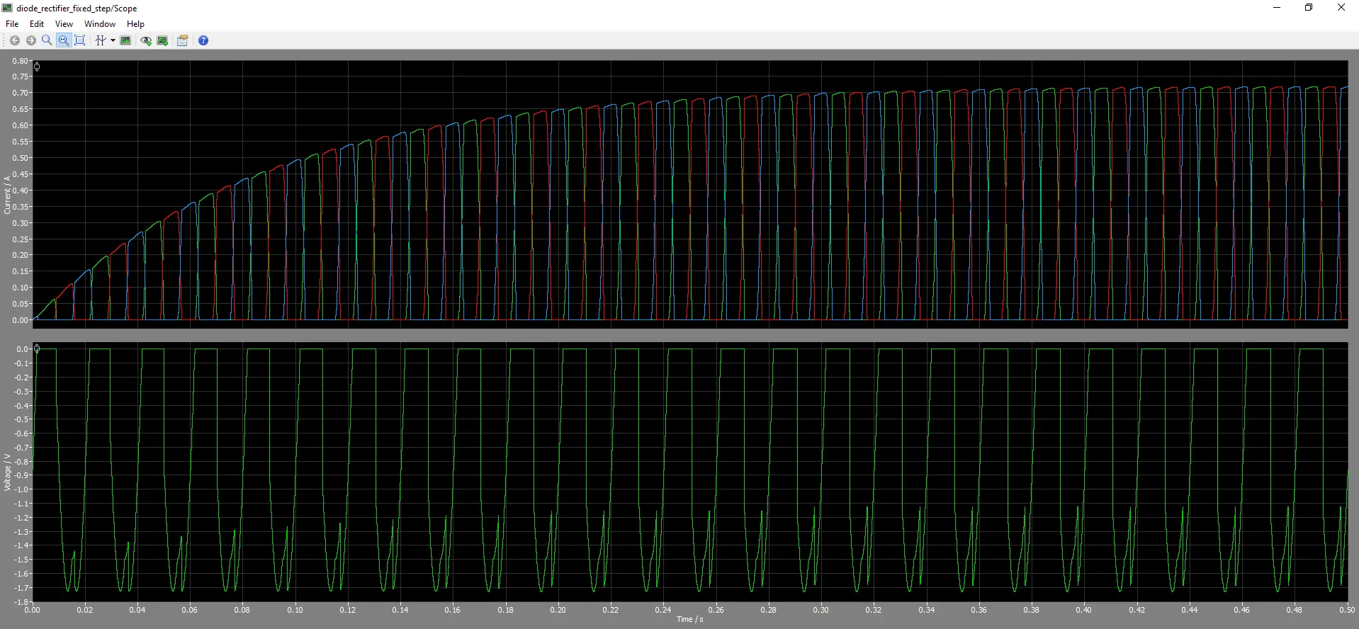 Использование программы начинается с создания новой модели в графическом редакторе, где пользователь может перетаскивать компоненты из библиотеки и соединять их проводниками. Каждый элемент настраивается через всплывающие окна параметров, где можно задать номиналы, режимы работы и начальные условия. После построения схемы задаются параметры симуляции: длительность, шаг интегрирования, метод численного анализа. Запуск модели позволяет наблюдать поведение системы в реальном времени. Результаты экспортируются в различные форматы для дальнейшего анализа. Интеграция с MATLAB/Simulink позволяет использовать PLECS Blockset внутри более сложных моделей, комбинируя управление и силовые цепи.