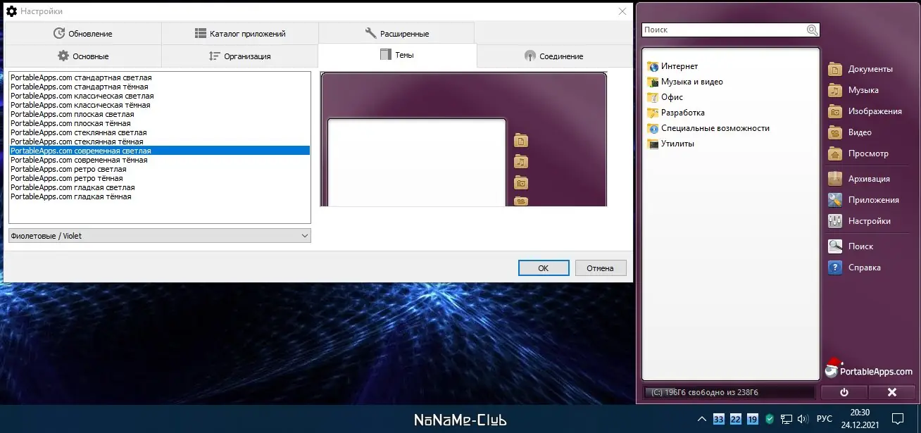 После распаковки платформы пользователь видит централизованное меню с доступными приложениями. Достаточно отметить нужные программы галочками — они автоматически загрузятся и распакуются. Интерфейс поддерживает сортировку по категориям, создание папок и выделение избранных приложений для быстрого доступа. Поиск по названию мгновенно находит нужное ПО, а настройки позволяют скрывать splash-экраны, управлять автозапуском и выбирать, отображать ли пометку «Portable» в названиях. Поддерживаются также портативные шрифты: форматы TTF, OTF и TTC можно использовать без установки в систему. Пользователь может настроить тему оформления, выбрать цветовую гамму и добавить персональное изображение в интерфейс. Модуль обновлений проверяет доступность новых версий и предлагает установить их с сохранением всех настроек и данных.