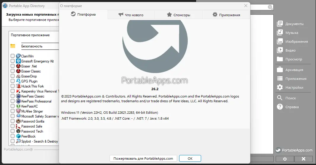 PortableApps.com Platform доступна для бесплатного скачивания в портативном формате. Версия упакована в .paf, что обеспечивает простоту распаковки и использование без прав администратора. Программа совместима с современными версиями Windows и поддерживает русский язык интерфейса. Подходит как для личного, так и для профессионального использования.