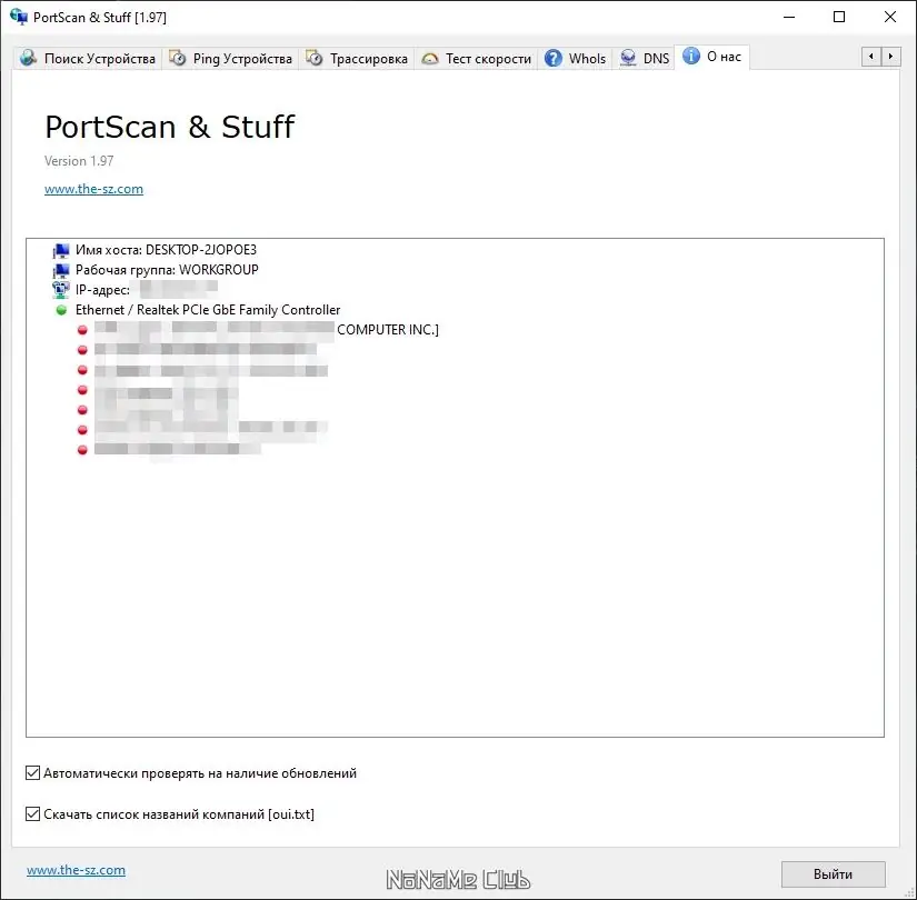 PortScan & Stuff — это бесплатная утилита для анализа локальной сети и диагностики подключений, позволяющая находить активные устройства, определять открытые порты и получать подробную информацию о хостах, включая MAC-адреса, имена и запущенные службы. Программа поддерживает проверку скорости соединения, трассировку маршрутов, пинг и Whois-запросы к доменным именам. Результаты сканирования можно экспортировать в XML для дальнейшего анализа.