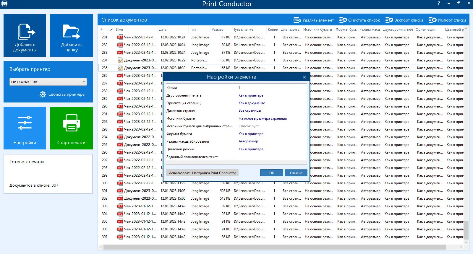 Работа с Print Conductor