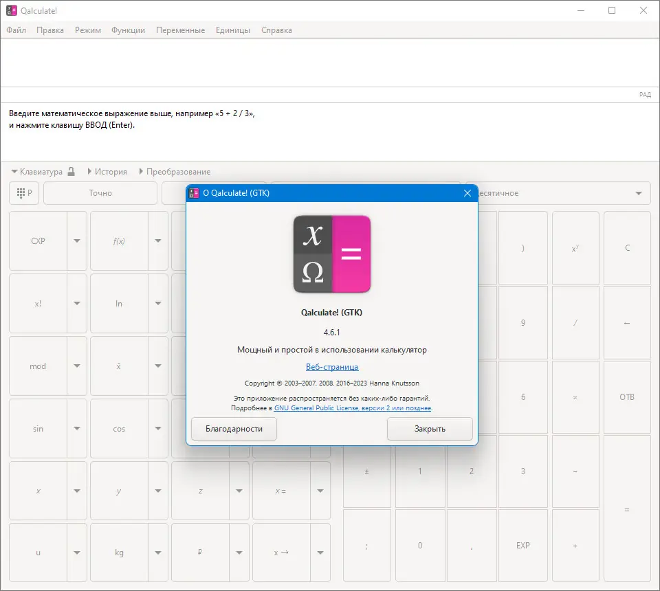 Qalculate! сочетает в себе возможности профессионального математического пакета и удобство повседневного калькулятора.