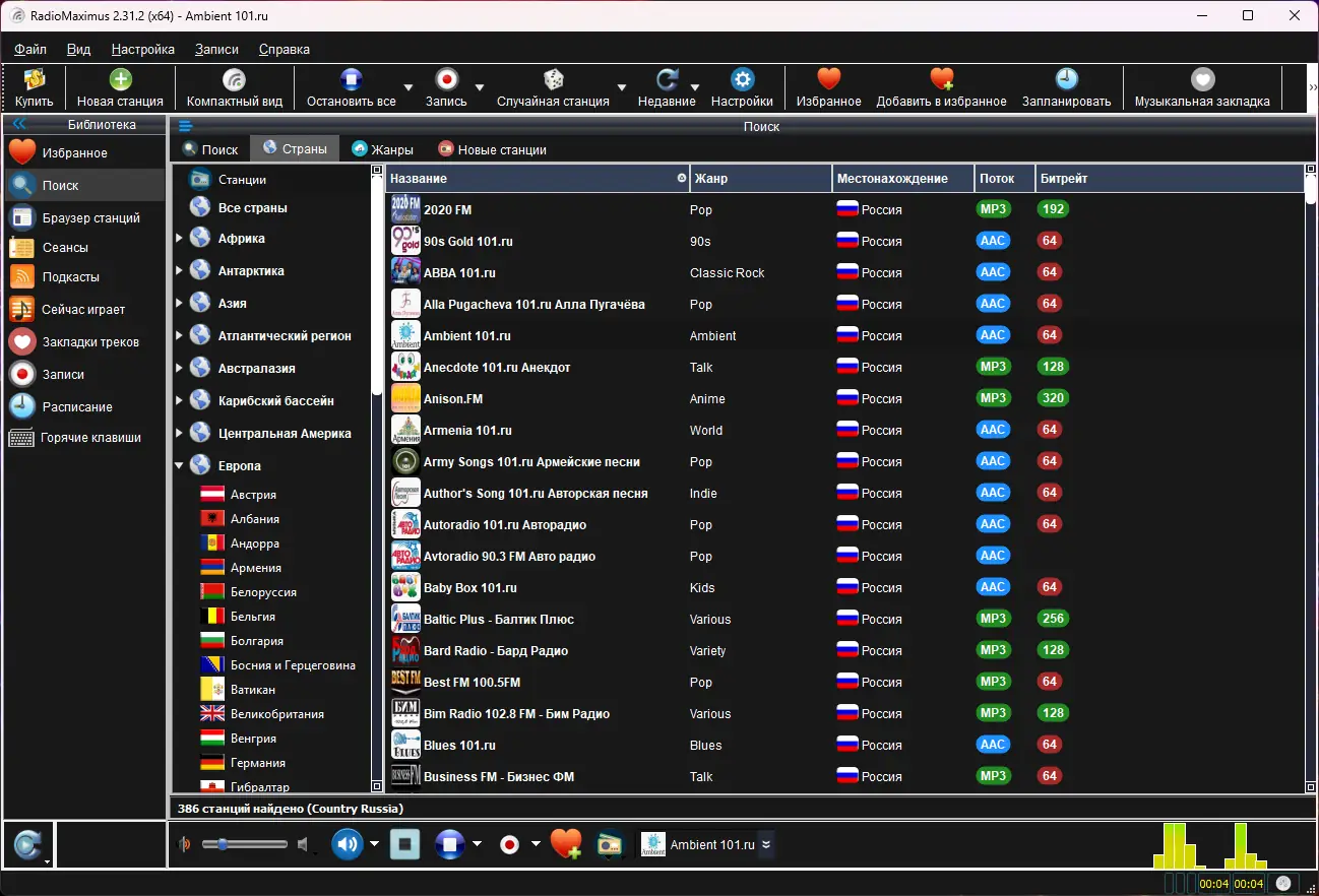 RadioMaximus — удобное приложение для прослушивания и записи эфира с мировых радиостанций, поддерживающее одновременный захват аудио с нескольких источников и сохранение в популярных форматах, включая MP3, AAC, OGG, WMA и RAW. Программа автоматически определяет треки в эфире, отображает обложки и тексты песен, а также позволяет создавать персональные плейлисты и закладки. Благодаря интуитивному интерфейсу и расширенным настройкам, пользователь получает полный контроль над аудиопотоками.