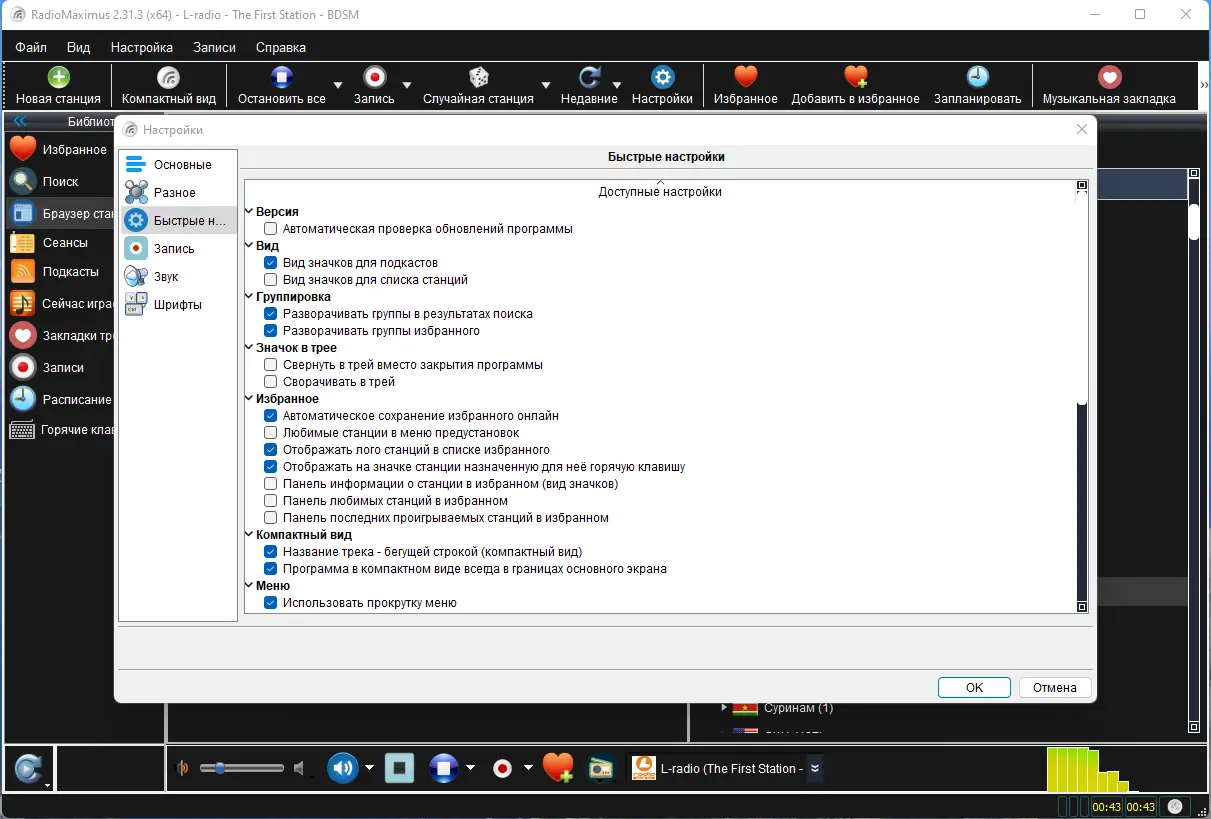 - Возможность создания пользовательских закладок и списков радиостанций