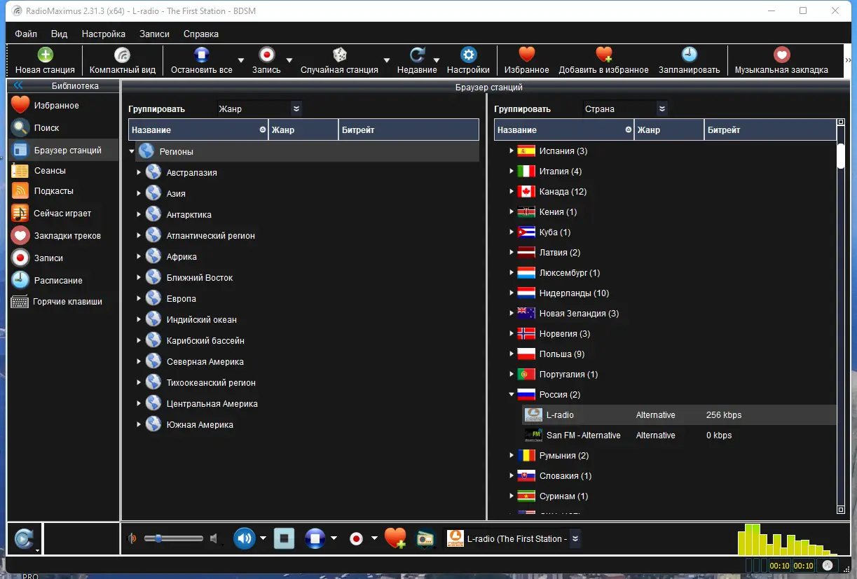 RadioMaximus — это удобное приложение для прослушивания и записи эфира с радиостанций со всего мира. Программа поддерживает одновременный захват аудио с нескольких каналов и сохранение в популярные форматы, включая MP3, AAC, OGG, WMA и RAW. Управление происходит через интуитивно понятный интерфейс, а все настройки легко адаптируются под нужды пользователя. Возможность автоматической идентификации треков и запись отдельных композиций делают софт незаменимым для меломанов и коллекционеров музыки.