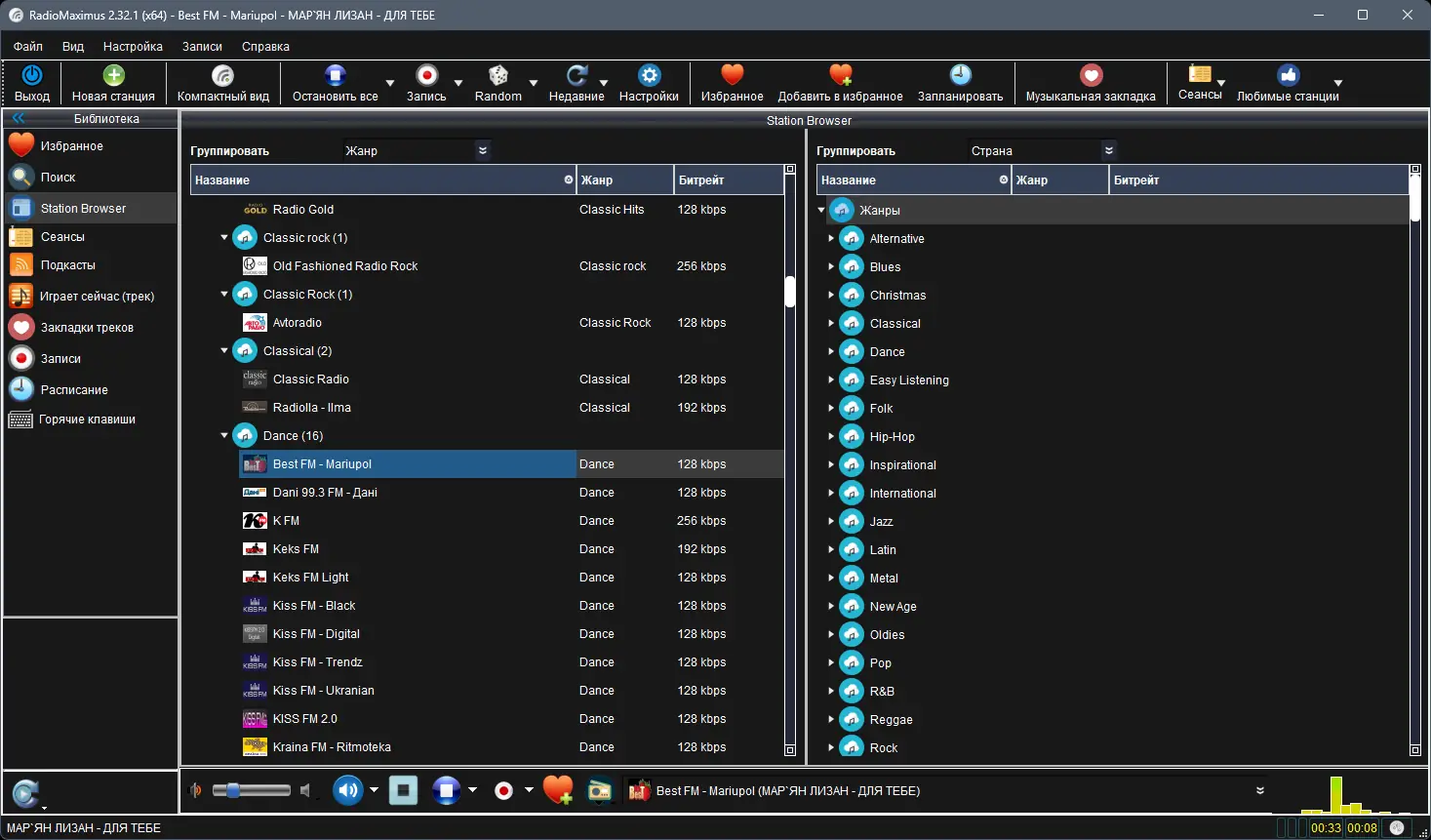 RadioMaximus — это удобное приложение для прослушивания и записи эфира с радиостанций со всего мира. Программа поддерживает одновременный захват звука с нескольких каналов и позволяет сохранять аудиоданные в популярных форматах, включая MP3, AAC, OGG, WMA и RAW. Благодаря интуитивному интерфейсу и широкому функционалу, пользователи могут легко находить любимые станции, отслеживать проигрываемые треки и автоматически сохранять нужные композиции.