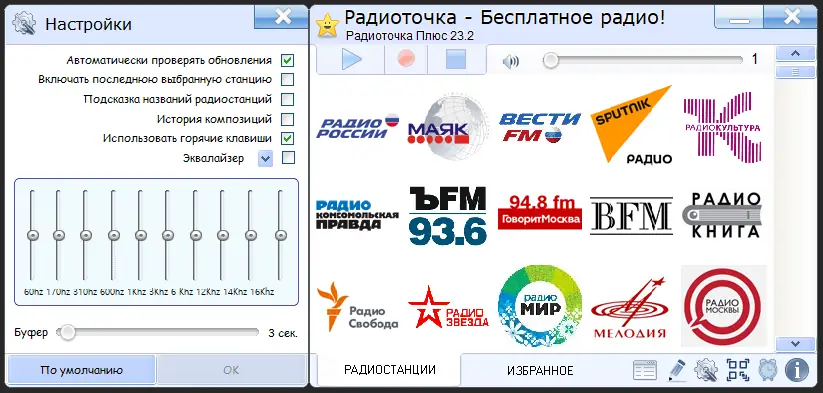 - Поддержка записи эфира для последующего прослушивания