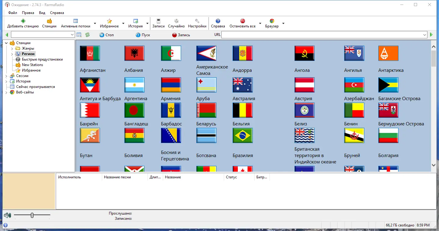 RarmaRadio предоставляет доступ к обширной базе интернет-радиостанций, классифицированных по жанрам, регионам, сетям и битрейту. Пользователь может быстро найти подходящую станцию с помощью встроенной системы поиска или воспользоваться функцией случайного выбора. Интерфейс программы интуитивно понятен и позволяет легко управлять списками, плейлистами и настройками записи.
