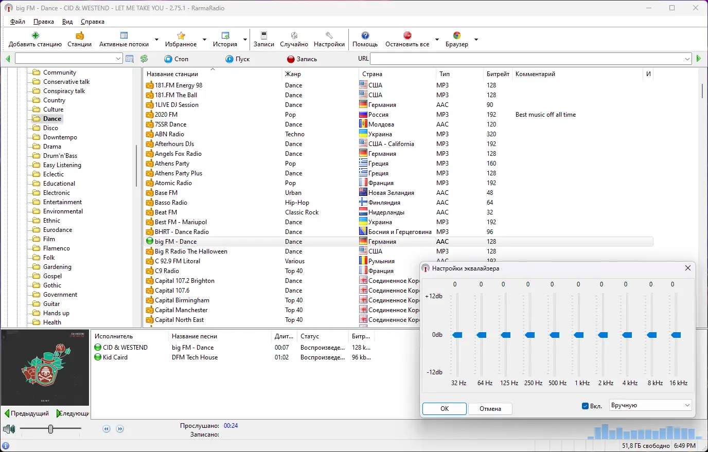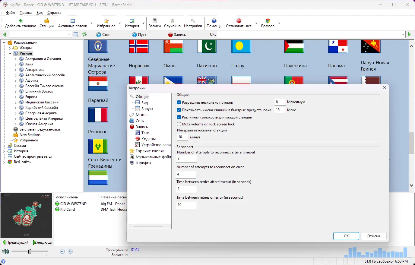 Программа RarmaRadio предоставляет возможность слушать и записывать интернет-радиостанции с автоматическим сохранением тегов и обложек альбомов. Интерфейс позволяет удобно управлять станциями, искать их по жанрам и регионам, а также настраивать расписание записи.