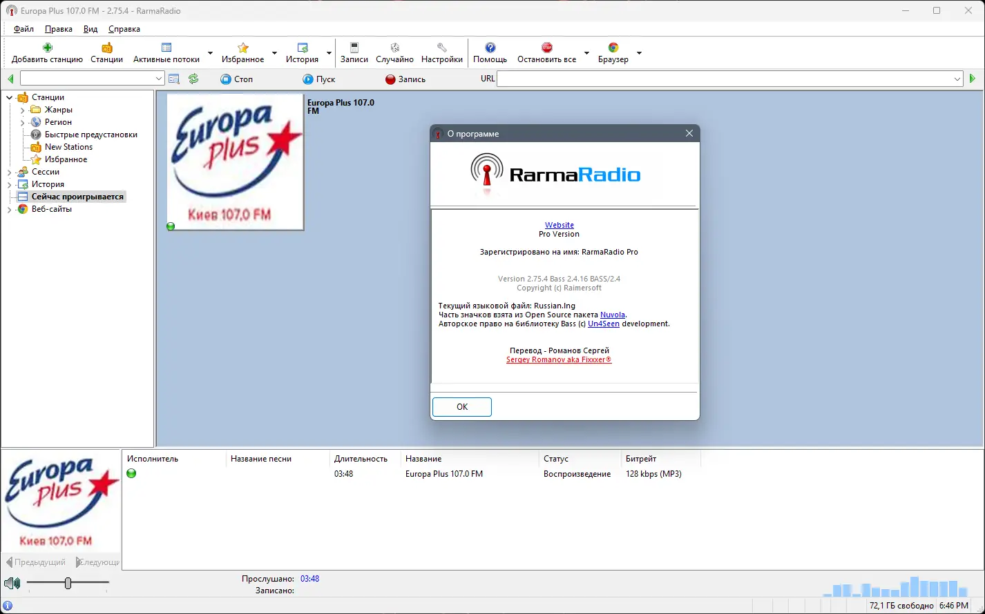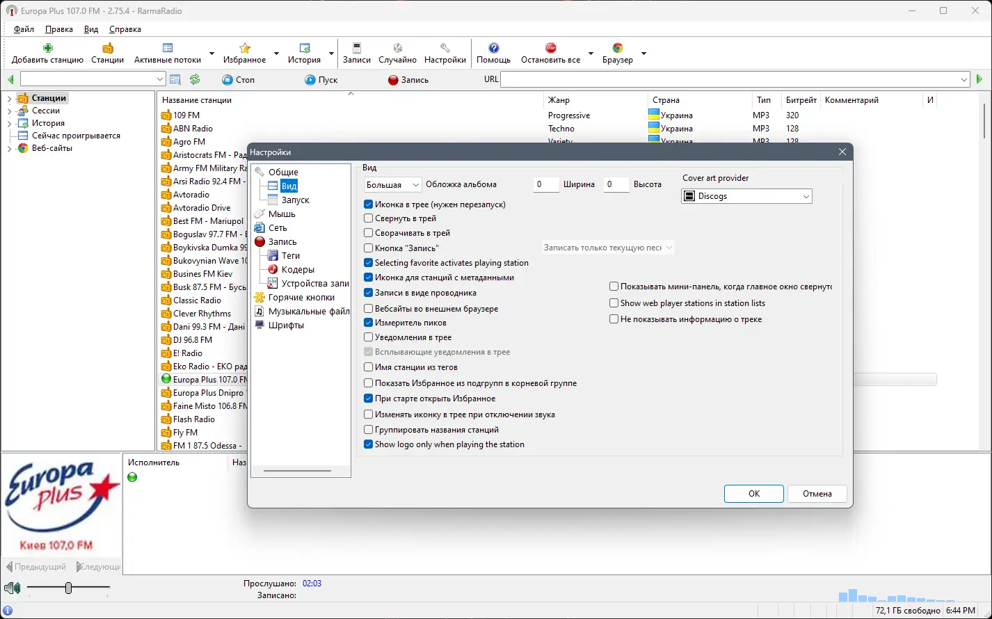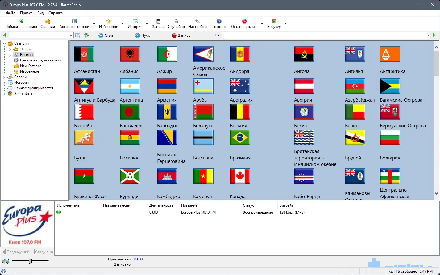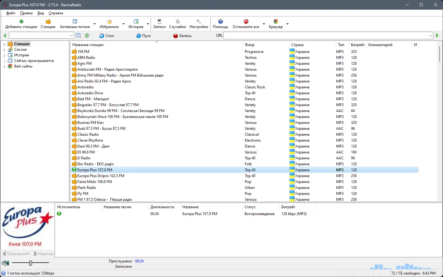 Программа RarmaRadio предназначена для прослушивания и записи эфиров интернет-радиостанций с возможностью автоматического тегирования аудиофайлов. Интерфейс позволяет удобно управлять множеством станций, организованных по жанрам, регионам и качеству звука.