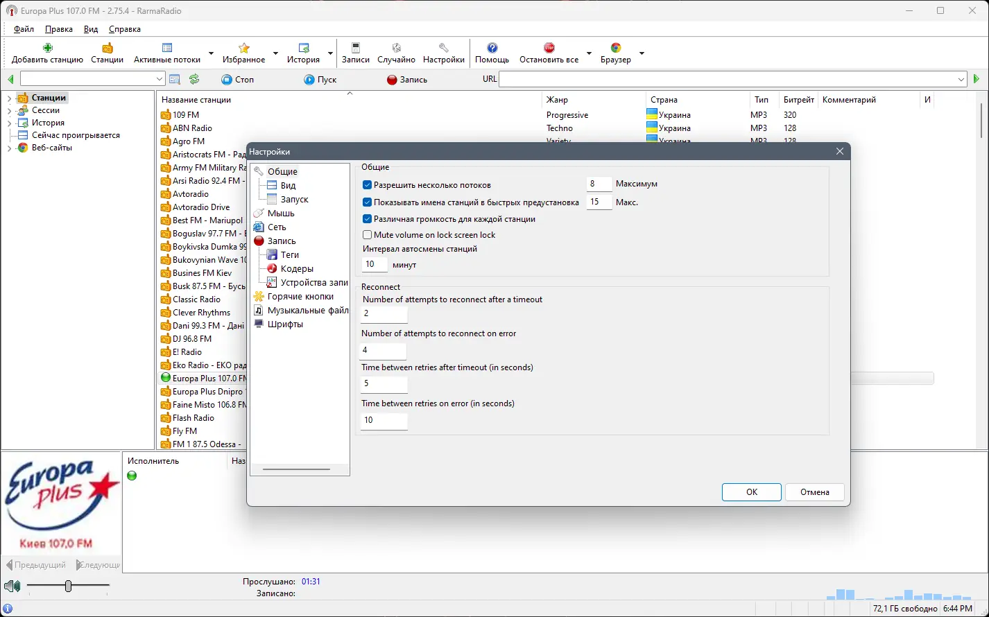 - Поддержка воспроизведения и одновременной записи нескольких радиостанций.
