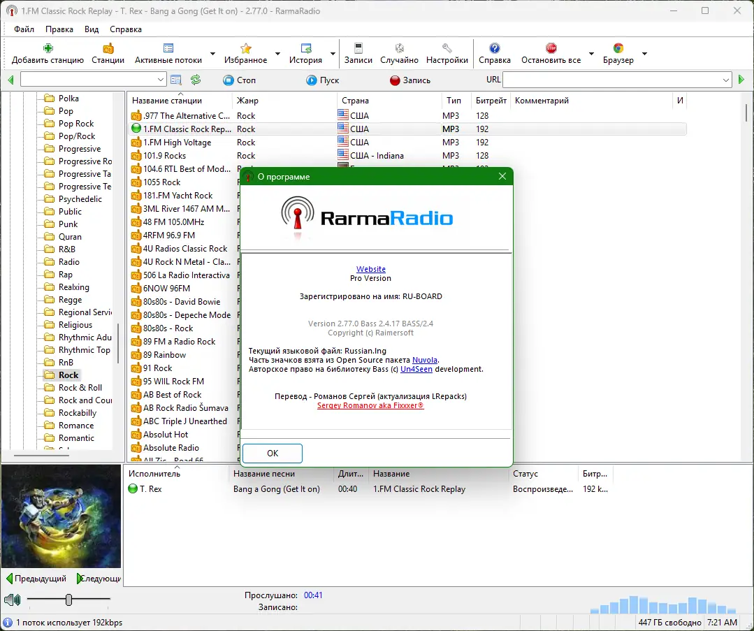 RarmaRadio — это мощный и функциональный проигрыватель интернет-радио, позволяющий не только слушать тысячи станций со всего мира, но и записывать трансляции с автоматическим тегированием треков. Программа поддерживает широкий выбор жанров, регионов и битрейтов, обеспечивая высокое качество звука и удобную навигацию. Благодаря интеграции с базами данных музыкальной информации, приложение отображает названия композиций, имена исполнителей и обложки альбомов в реальном времени.