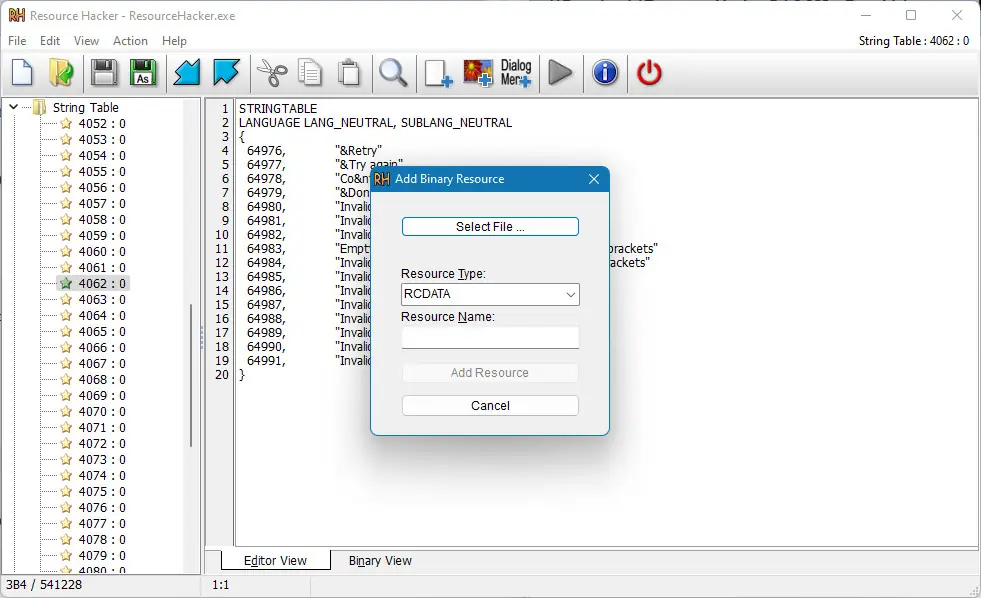 Использование Resource Hacker начинается с открытия нужного файла: это может быть приложение формата exe, системная библиотека dll или ресурсный файл .res. После загрузки программа отображает дерево ресурсов, сгруппированных по типам: строки, диалоги, меню, версии, иконки и другие. Пользователь может дважды кликнуть на элемент, чтобы просмотреть его содержимое — например, диалог откроется в виде, близком к оригинальному отображению в приложении. Для изменения текста строк или параметров диалогов используется встроенный редактор. Чтобы поменять иконку в приложении, достаточно найти соответствующий ресурс, удалить старую и вставить новую, выбрав файл с нужной графикой. Все изменения можно сохранить в исходный файл или экспортировать в отдельный. Поддержка командной строки позволяет автоматизировать извлечение ресурсов, включая бинарные данные, без необходимости ручного вмешательства.