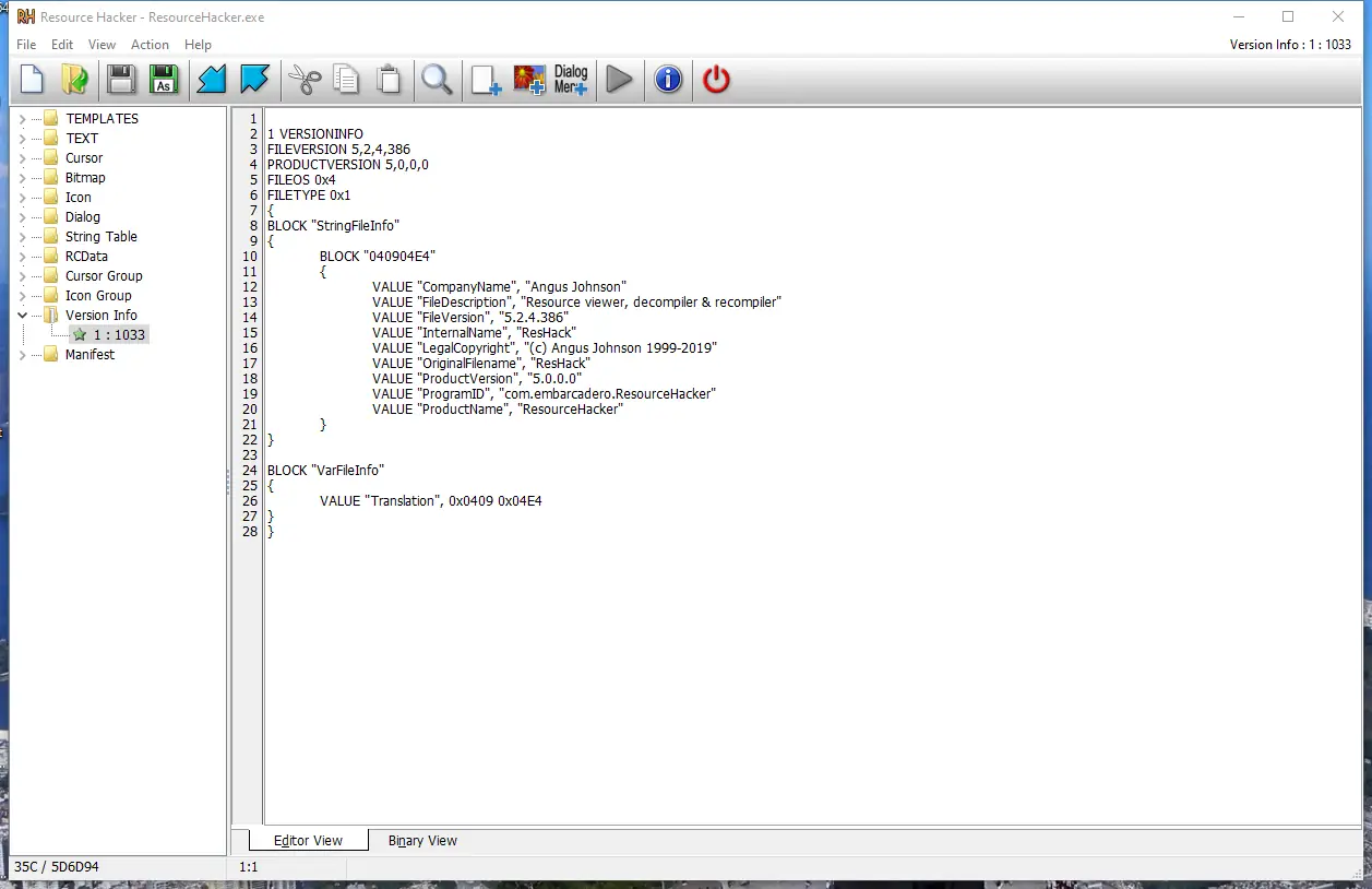 Работа с Resource Hacker