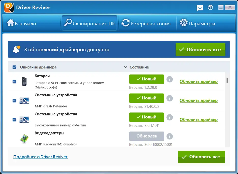 Работа с ReviverSoft Driver