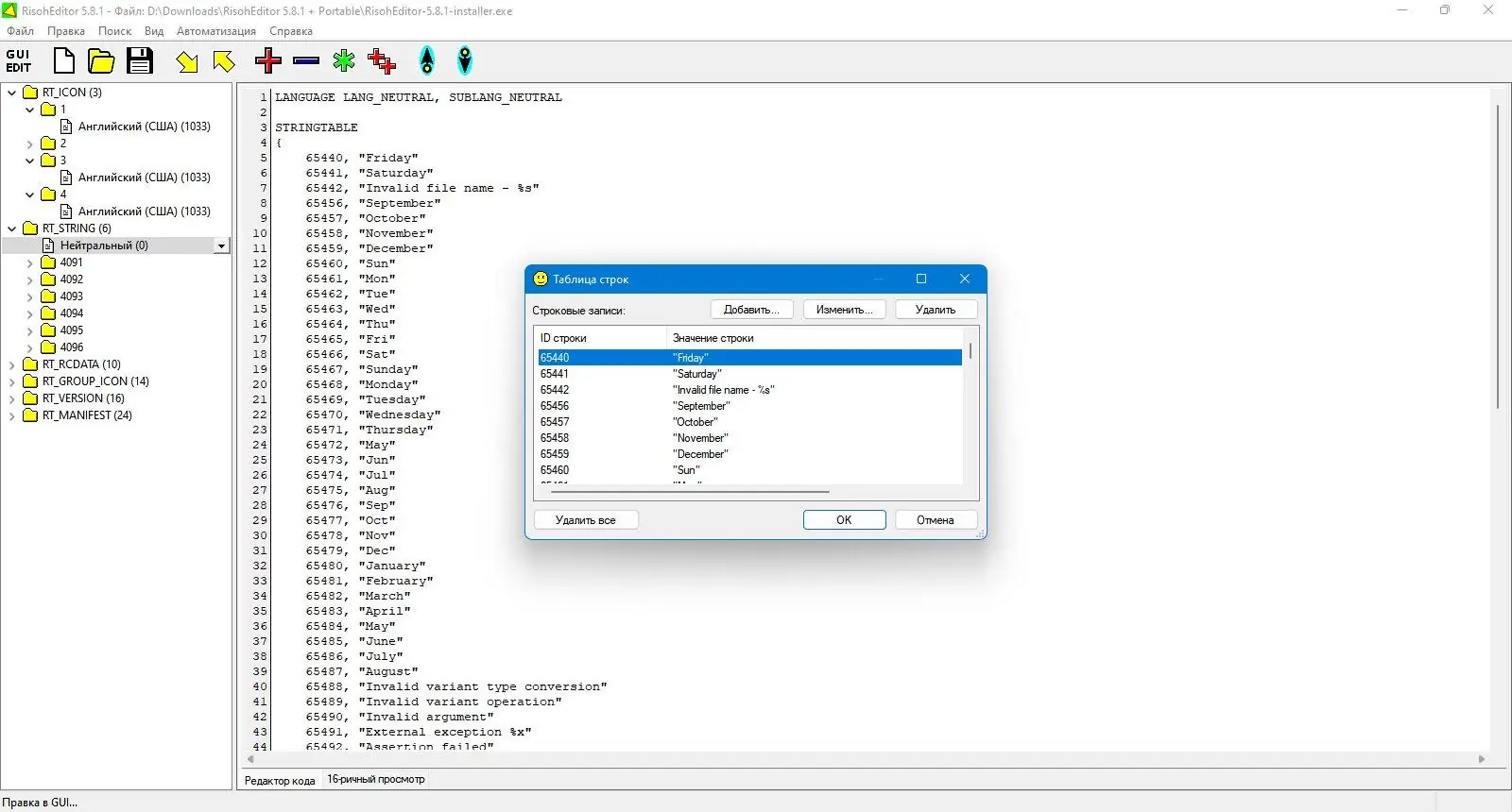 RisohEditor — это бесплатный редактор ресурсов для платформы Win32, разработанный Katayama Hirofumi MZ. Программа предназначена для эффективной работы с ресурсами в исполняемых файлах и библиотеках, позволяя изменять, извлекать и управлять различными типами данных.