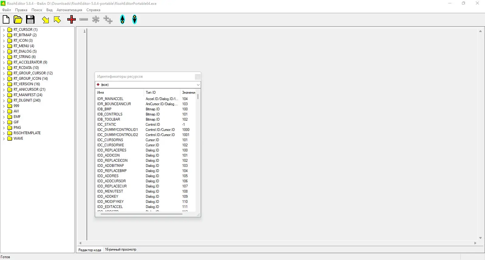 Работа с RisohEditor
