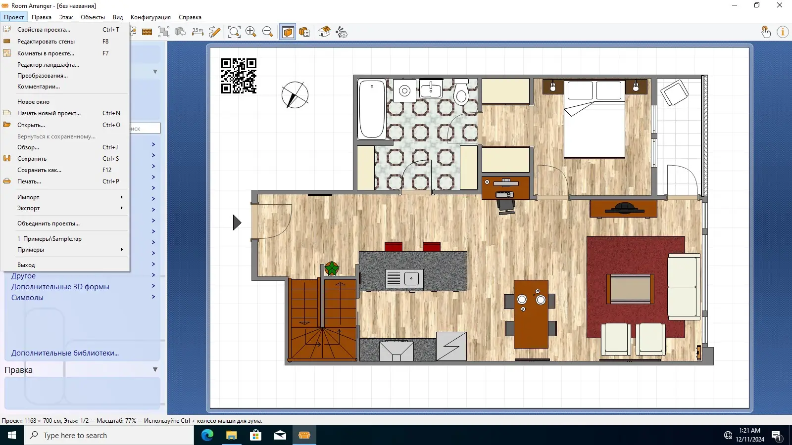 - Поддерживается импорт дополнительных библиотек объектов, что расширяет возможности по наполнению интерьера.