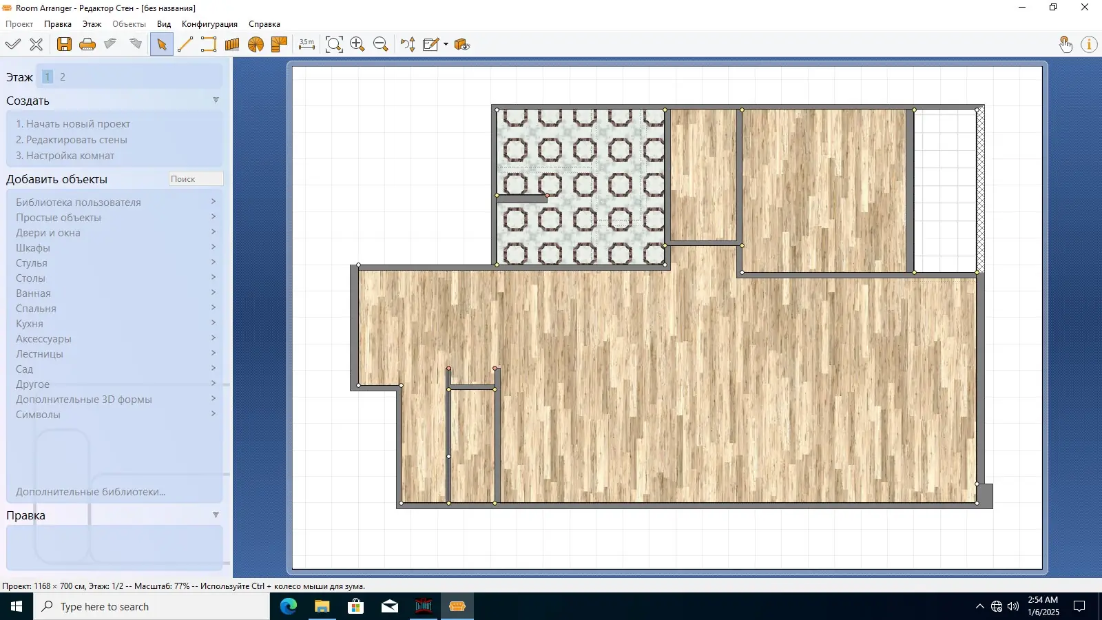 - Поддерживает редактирование цвета, размеров и ориентации предметов интерьера