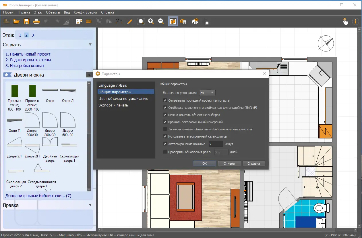 Room Arranger представляет собой специализированное программное обеспечение для моделирования интерьеров и планировки помещений. Оно ориентировано на пользователей, которым необходимо визуально оценить расстановку мебели, изменение конфигурации комнат или реализацию дизайнерской идеи. Программа поддерживает создание точных чертежей с учётом реальных размеров стен, окон, дверей и предметов обстановки. Она позволяет не только размещать объекты, но и вращать их, изменять цвет, пропорции и высоту, создавая максимально реалистичную картину. Работа ведётся в двухмерном режиме, а результат можно посмотреть в трёхмерном представлении, что особенно удобно для оценки общей атмосферы помещения. Проекты сохраняются в собственном формате, а также поддерживают экспорт в VRML и растровые изображения.