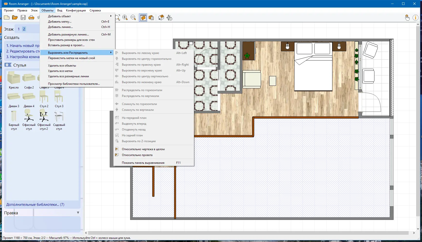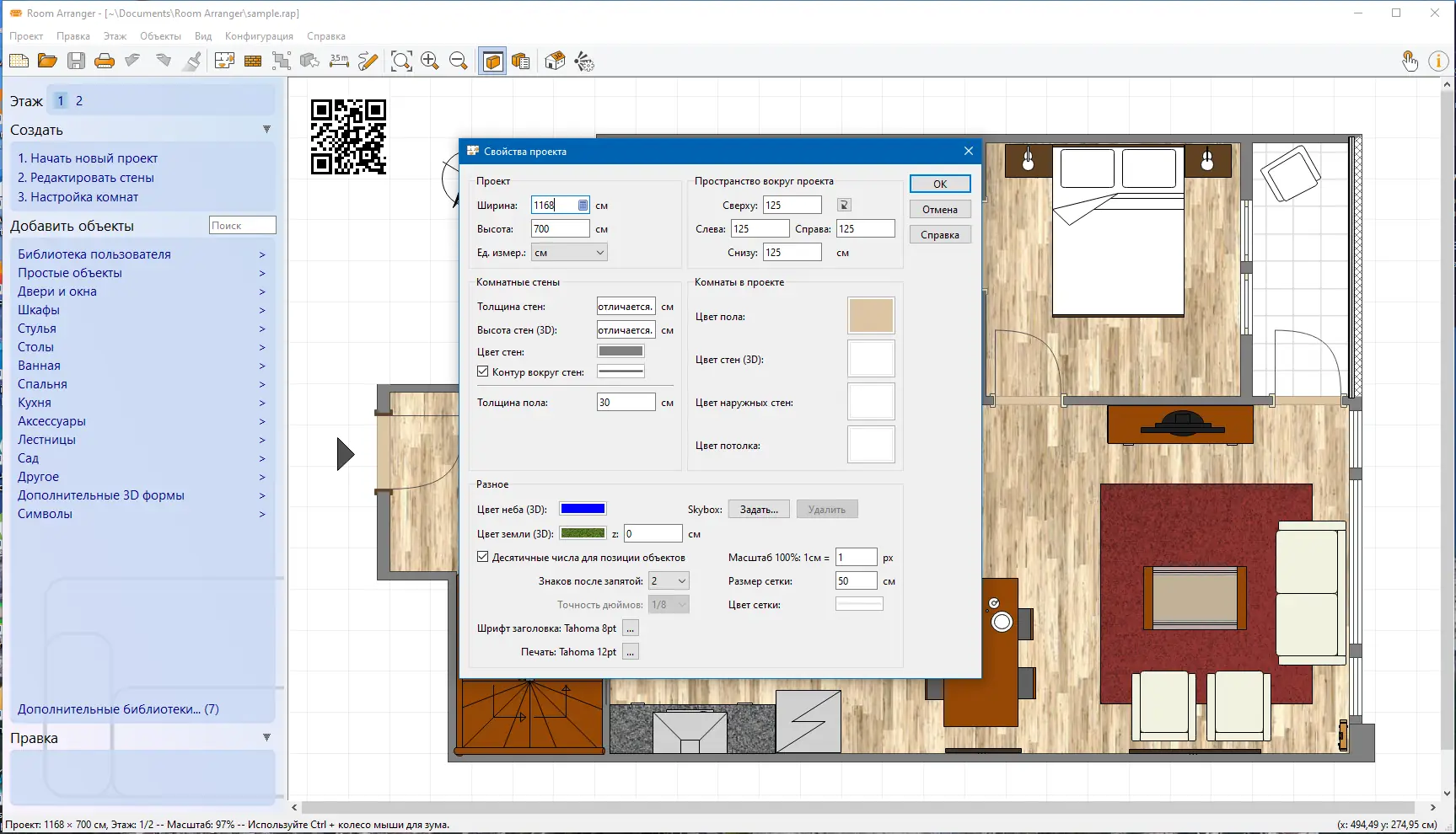 Room Arranger — это программа для проектирования интерьеров, позволяющая визуализировать расстановку мебели, изменять размеры объектов и создавать собственные элементы обстановки. Подходит для перепланировки жилых помещений и детальной проработки дизайна в 2D и 3D.