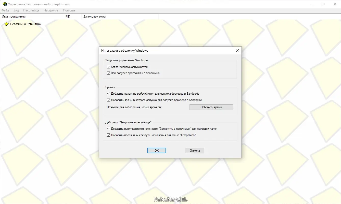 Работа с Sandboxie