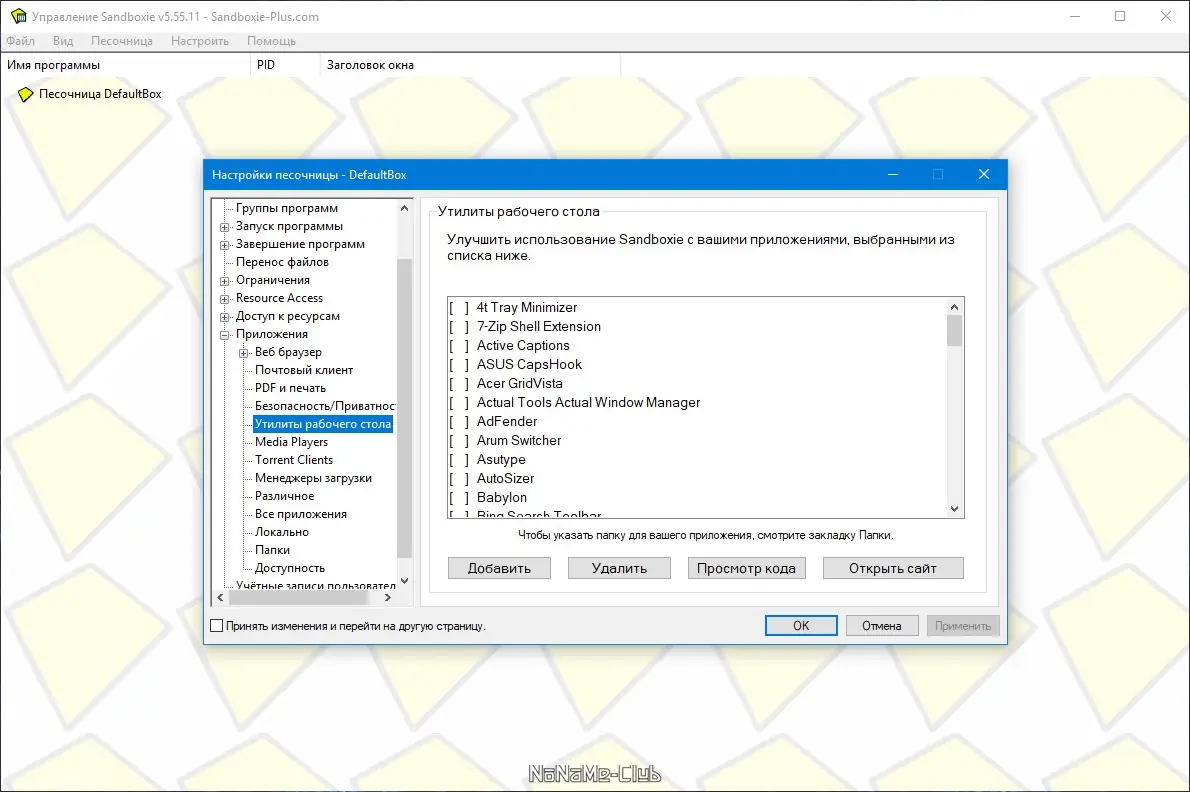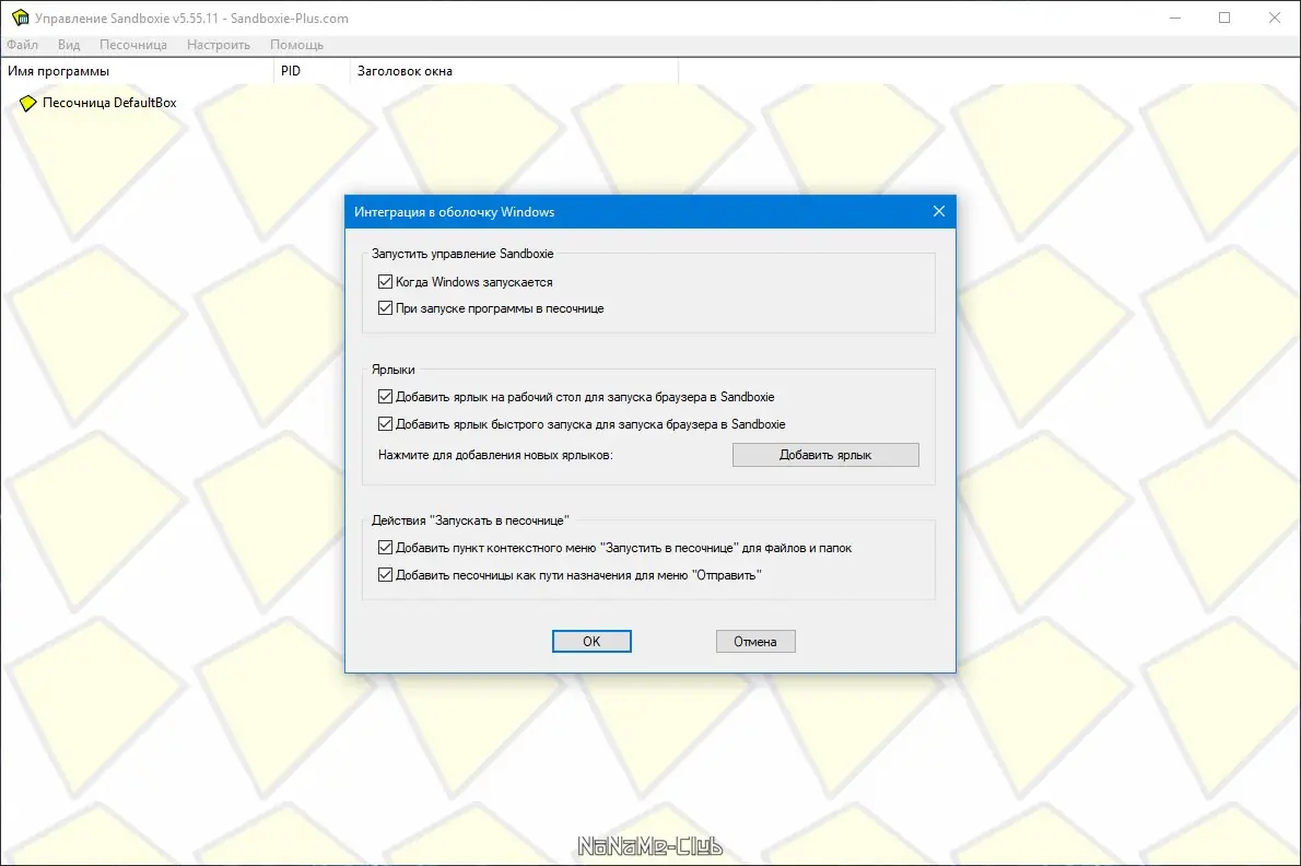 Работа с Sandboxie