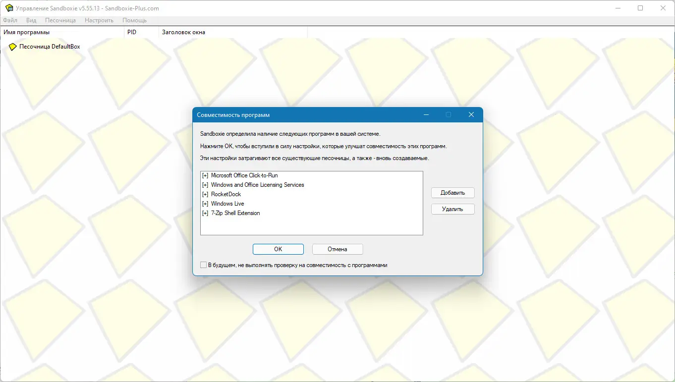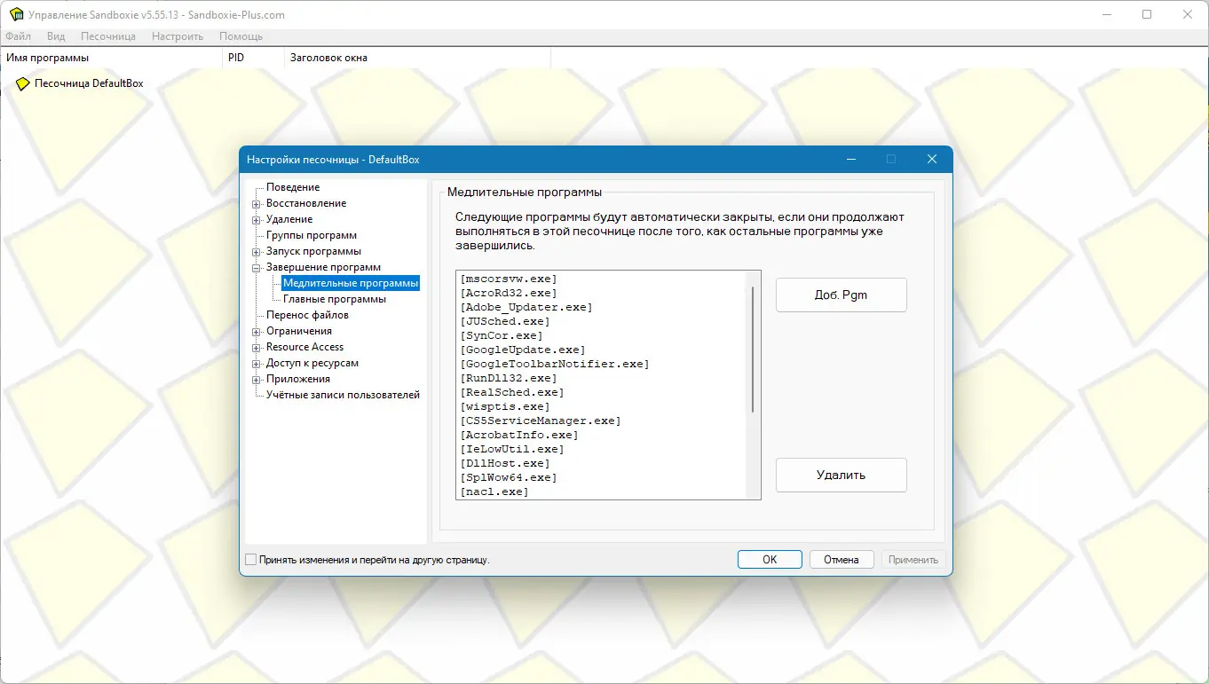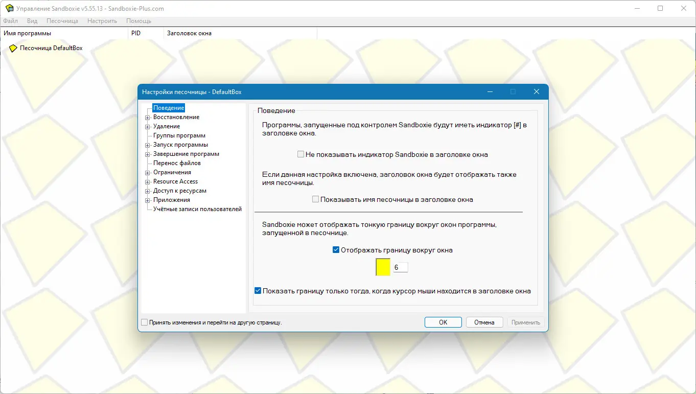 Работа с Sandboxie