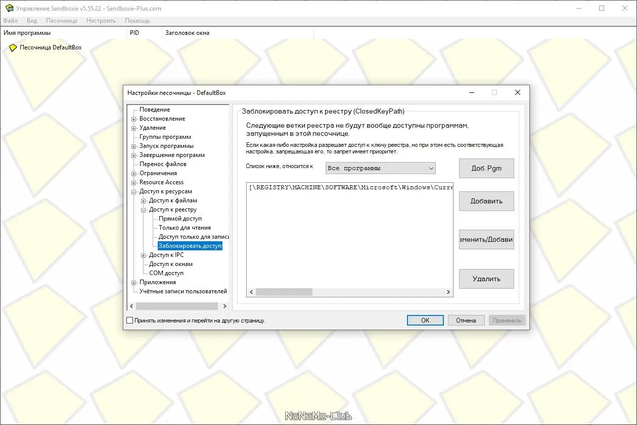- Песочница блокирует доступ программ к системным папкам и настройкам реестра.