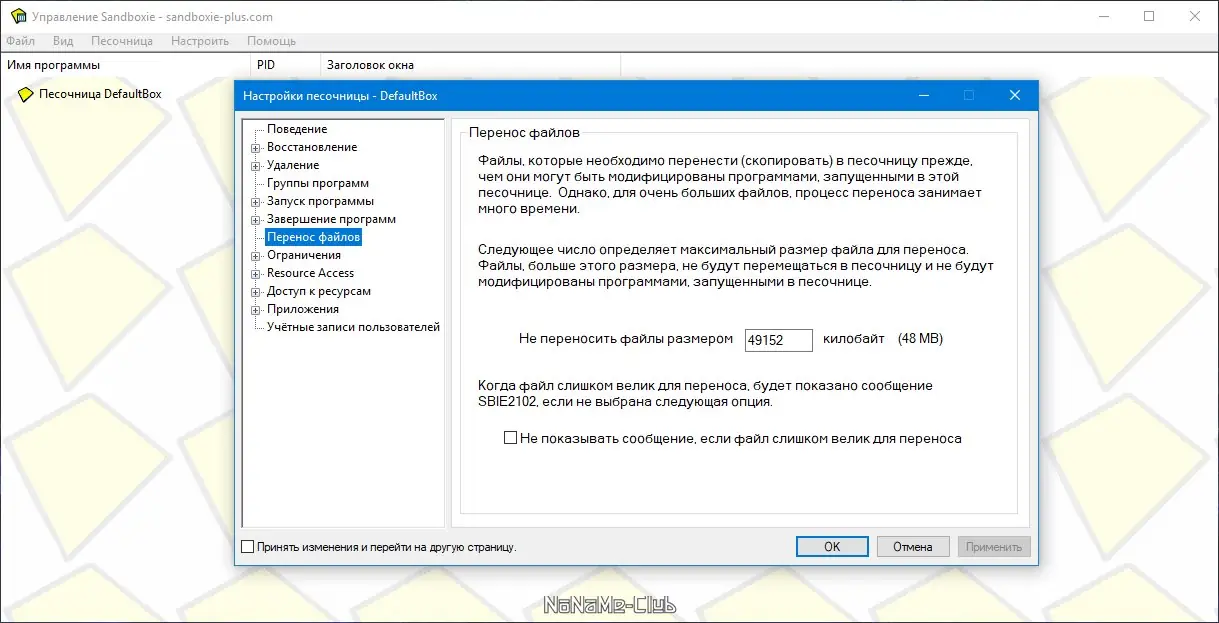 Работа с Sandboxie