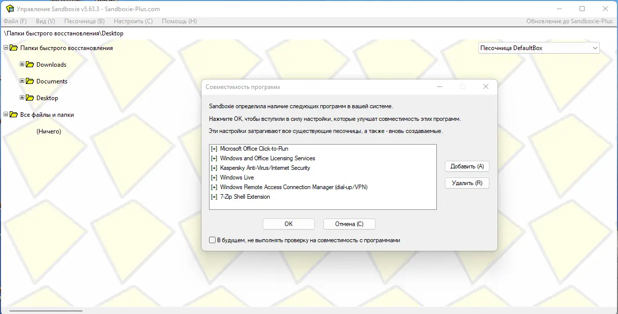 Работа с Sandboxie