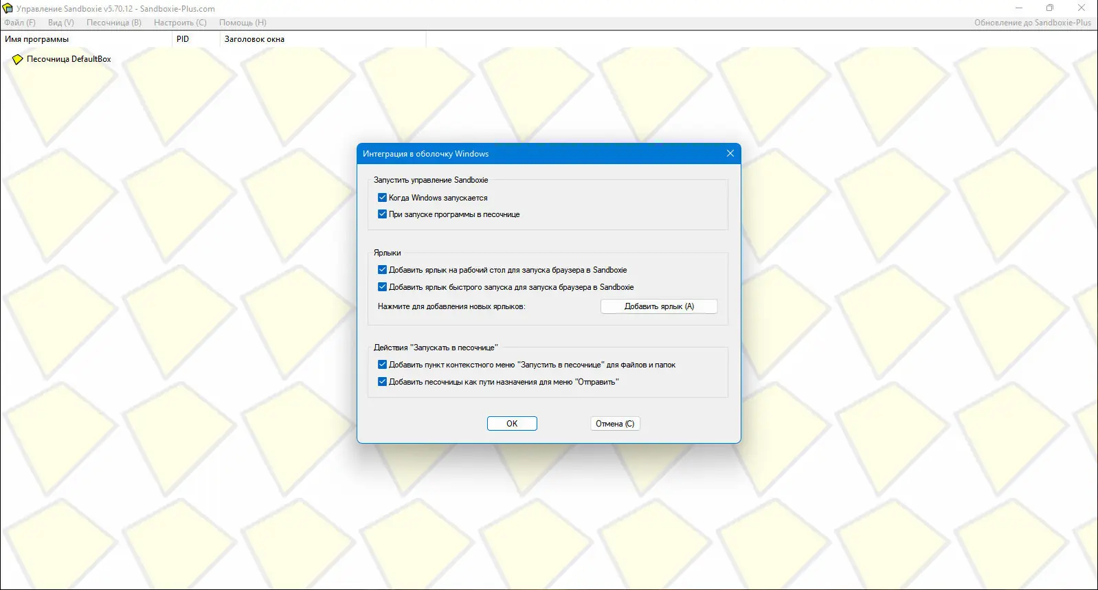Работа с Sandboxie