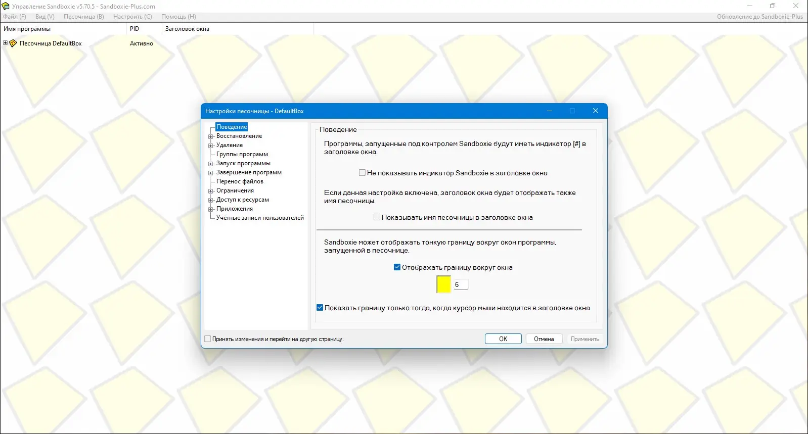 Работа с Sandboxie