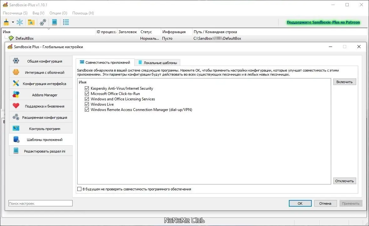 Работа с Sandboxie