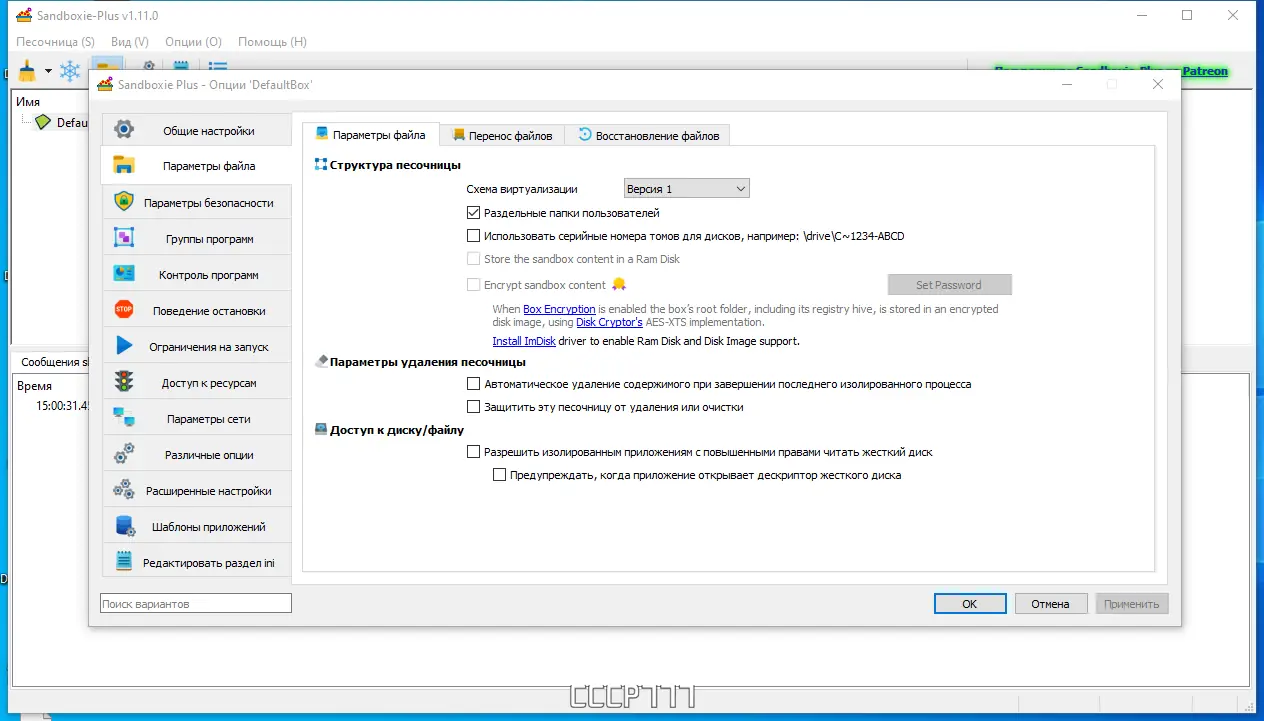 - Интеграция с ImDisk для размещения боксов на ramdisk, что ускоряет работу и повышает безопасность.