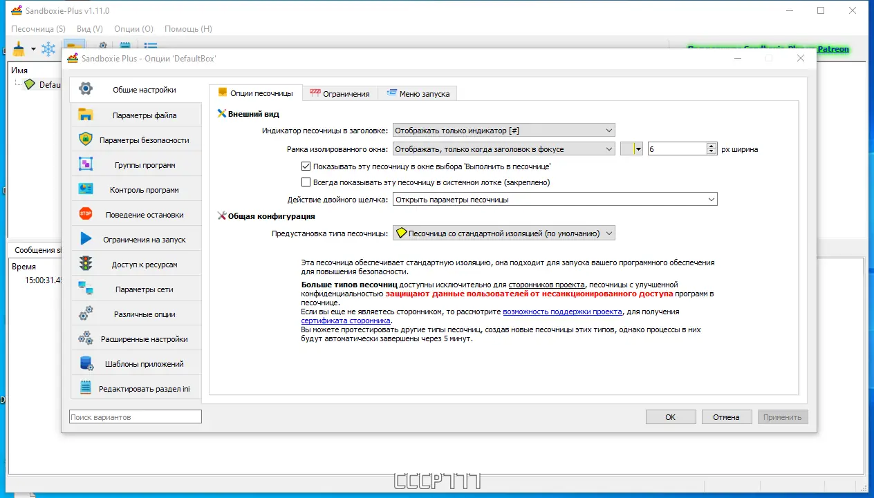 Работа с Sandboxie