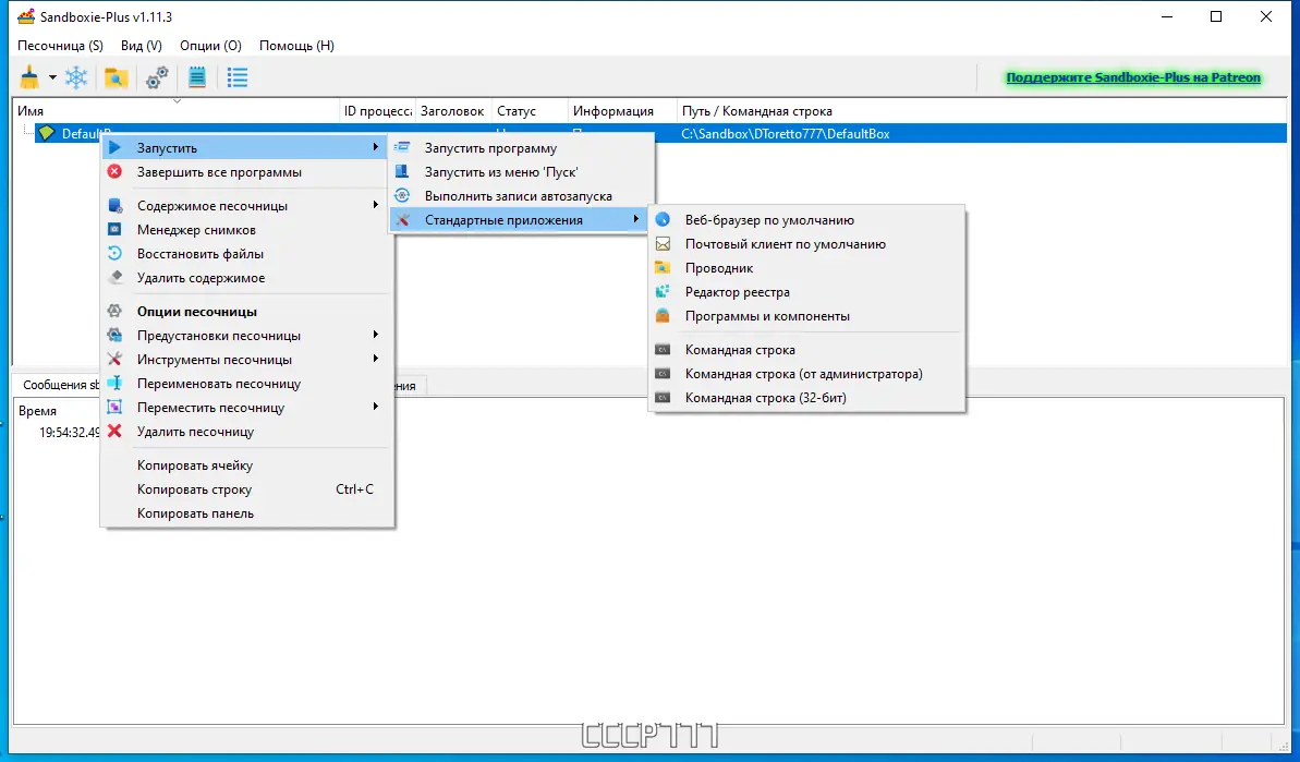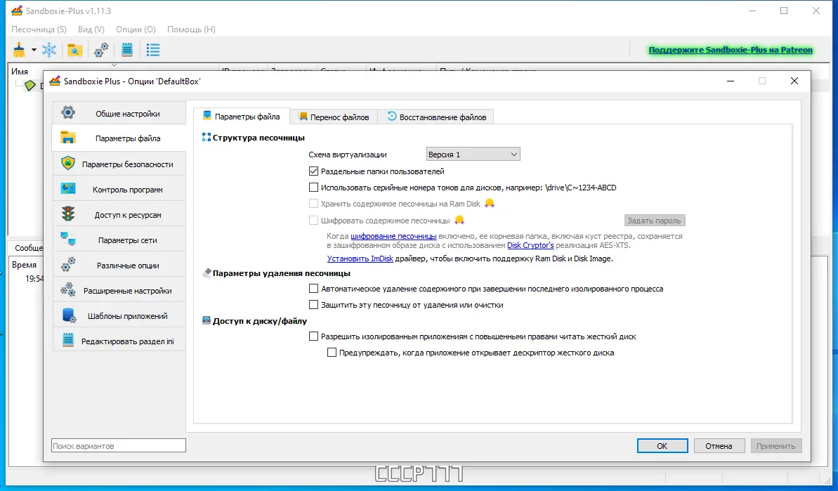 Работа с Sandboxie